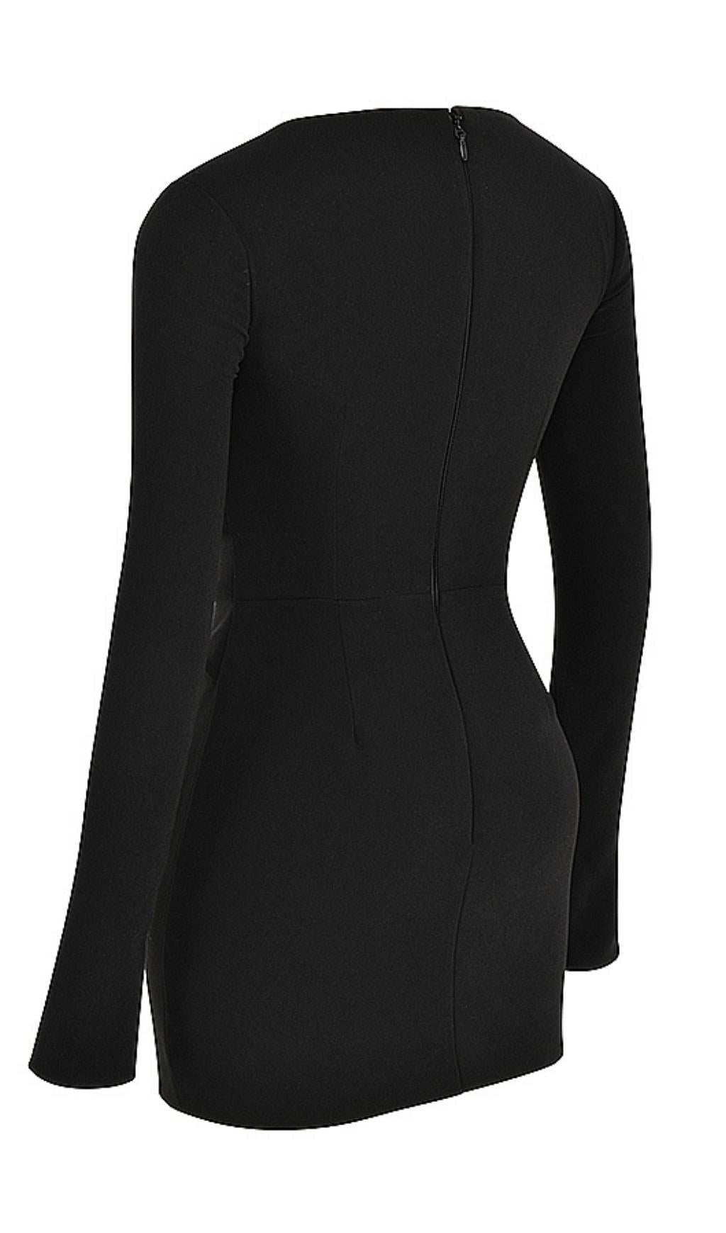 Turn heads and feel confident with this close-fitting mini dress in black. Designed to enhance your figure, this dress features a waist-in design that beautifully accentuates your curves. The hollow out design adds a touch of allure, making you the center of attention wherever you go.