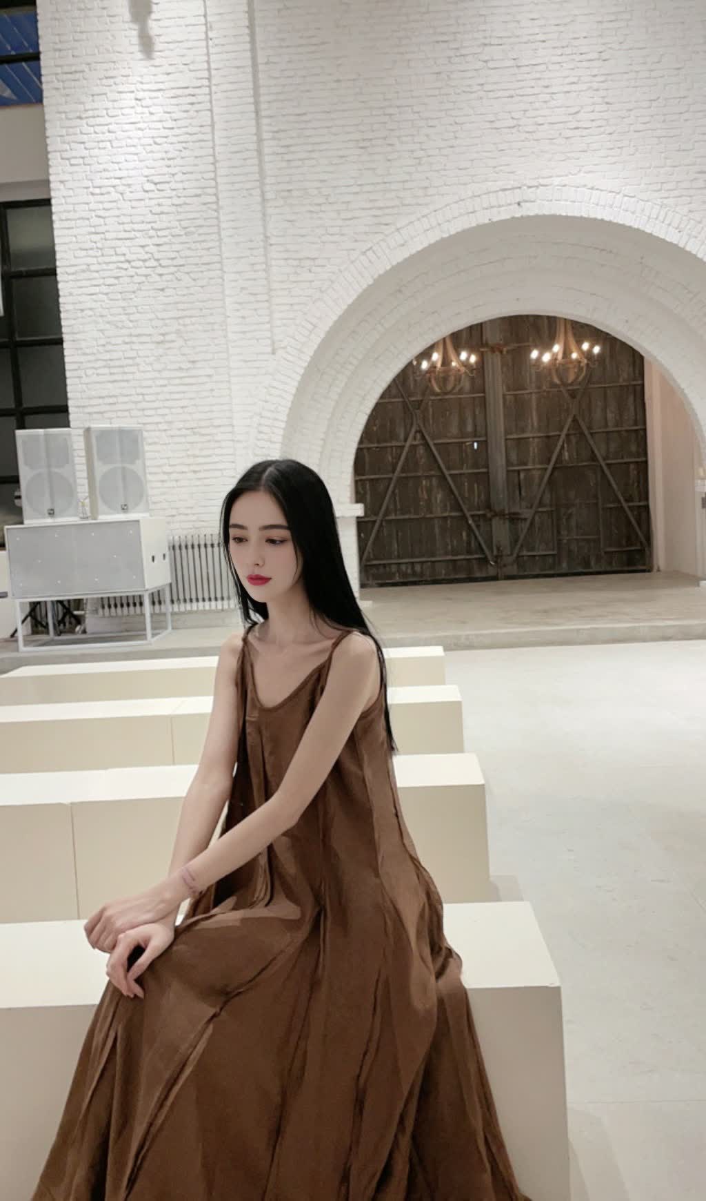 The dress features a simple - designed strapless style. The V - neckline shows off the neckline. The maxi dress has a good drape, and the pleats add a sense of layering. Its style leans towards simplicity and artistry, suitable for creating an elegant and leisurely atmosphere.