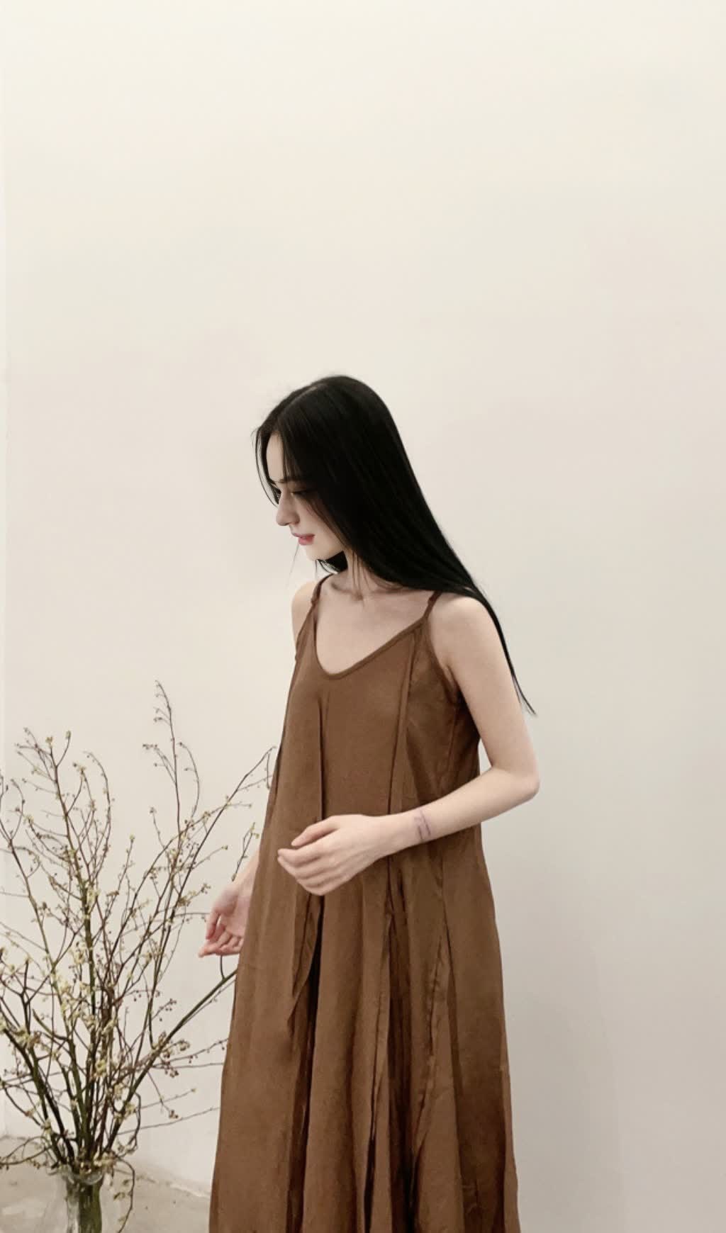 COFFEE STRAP RAW - EDGE PATCHWORK MAXI DRESS