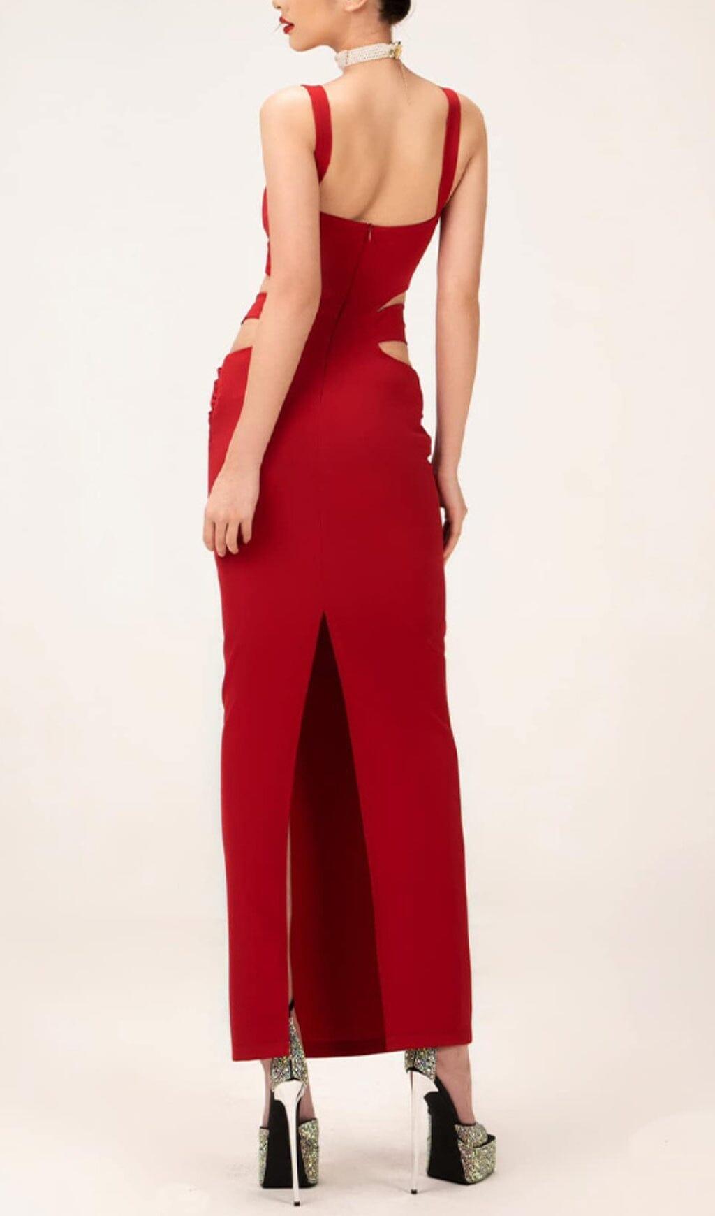 CRTSRAL EMBELLISHED HOLLOW MIDI DRESS IN WINE