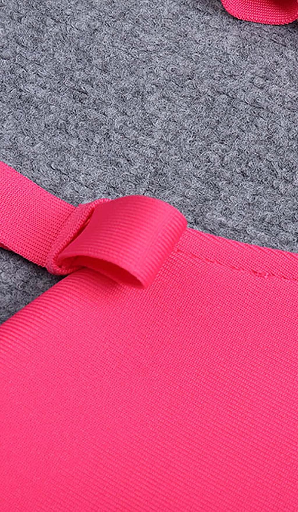 Command attention in this vivid fuchsia midi dress with alluring cutouts and parallel straps. This dress is designed to make you stand out from the crowd and be the center of attention. The vibrant pink color adds a bold and eye-catching touch to your look.
