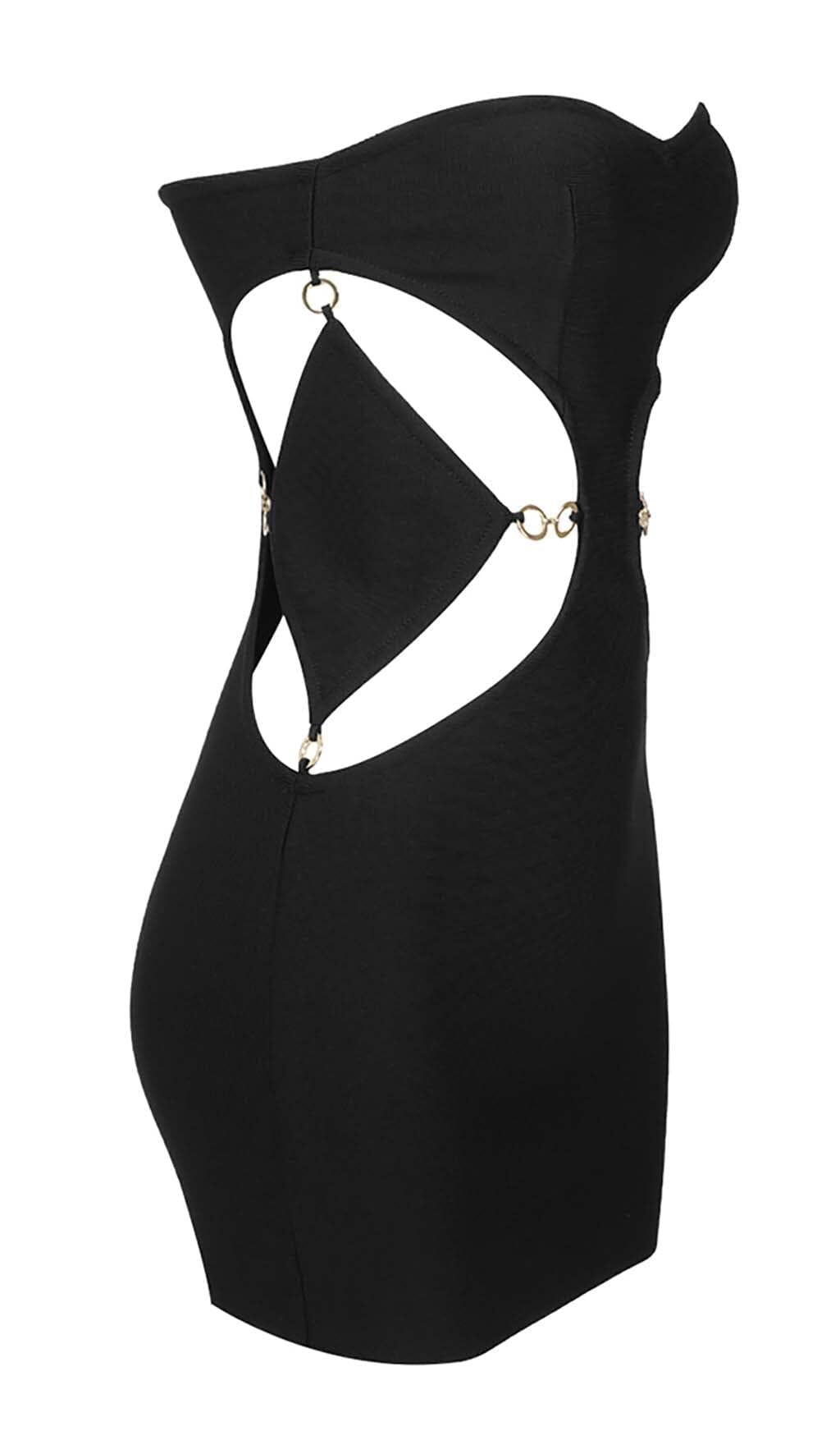 CUTOUT SWEATHEART NECKLINE MINI DRESS IN BLACK