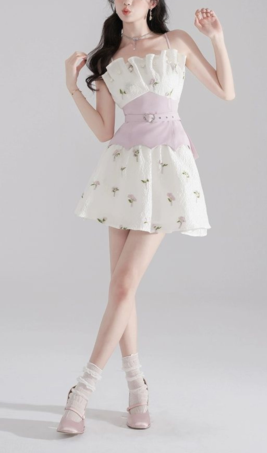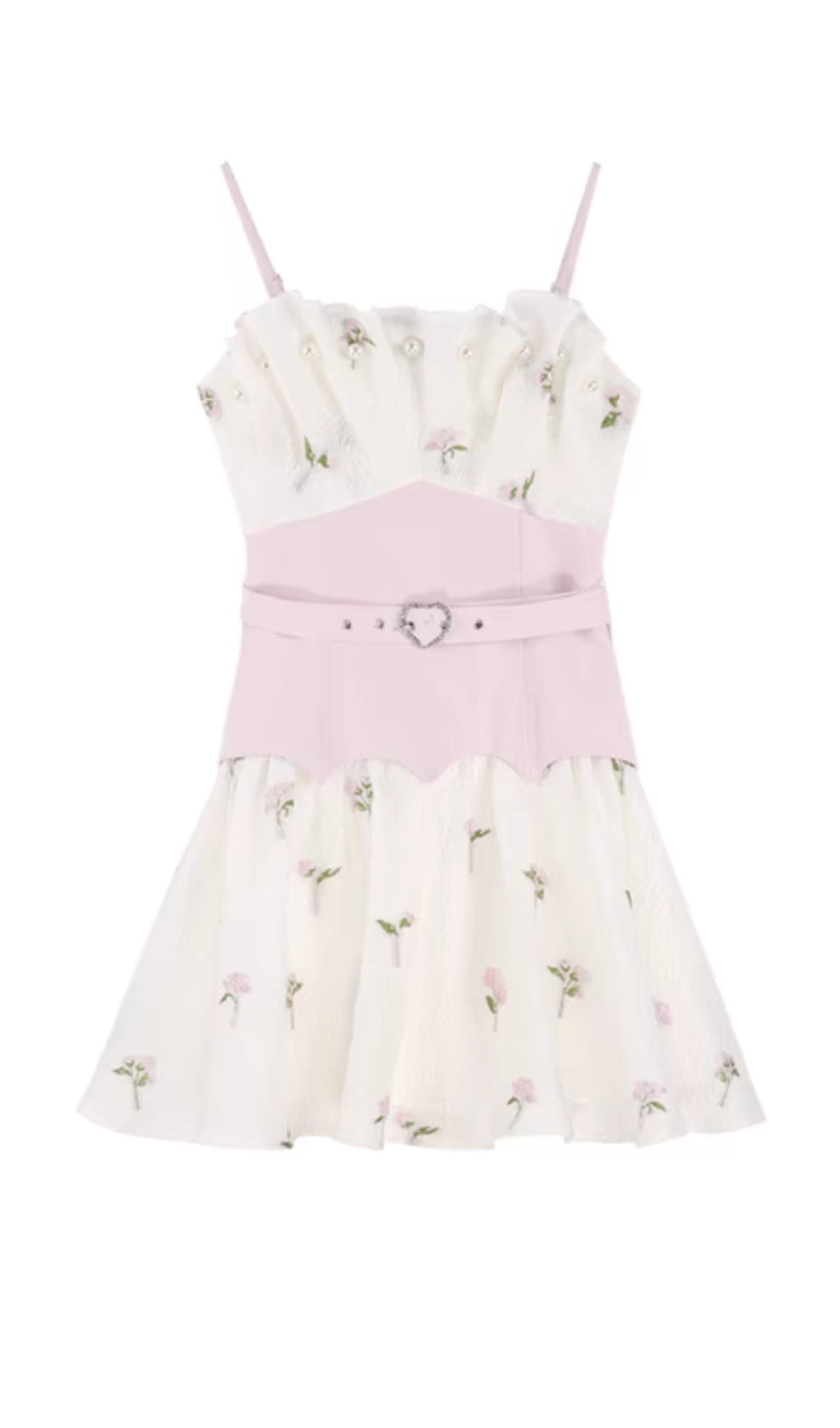 Looking for a unique and stylish dress? This embroidered jacquard strap mini dress features a flattering shell-shaped tube top design and a trendy pink belt. Perfect for any occasion, it is sure to make you stand out in a crowd and receive compliments. Add it to your wardrobe today!