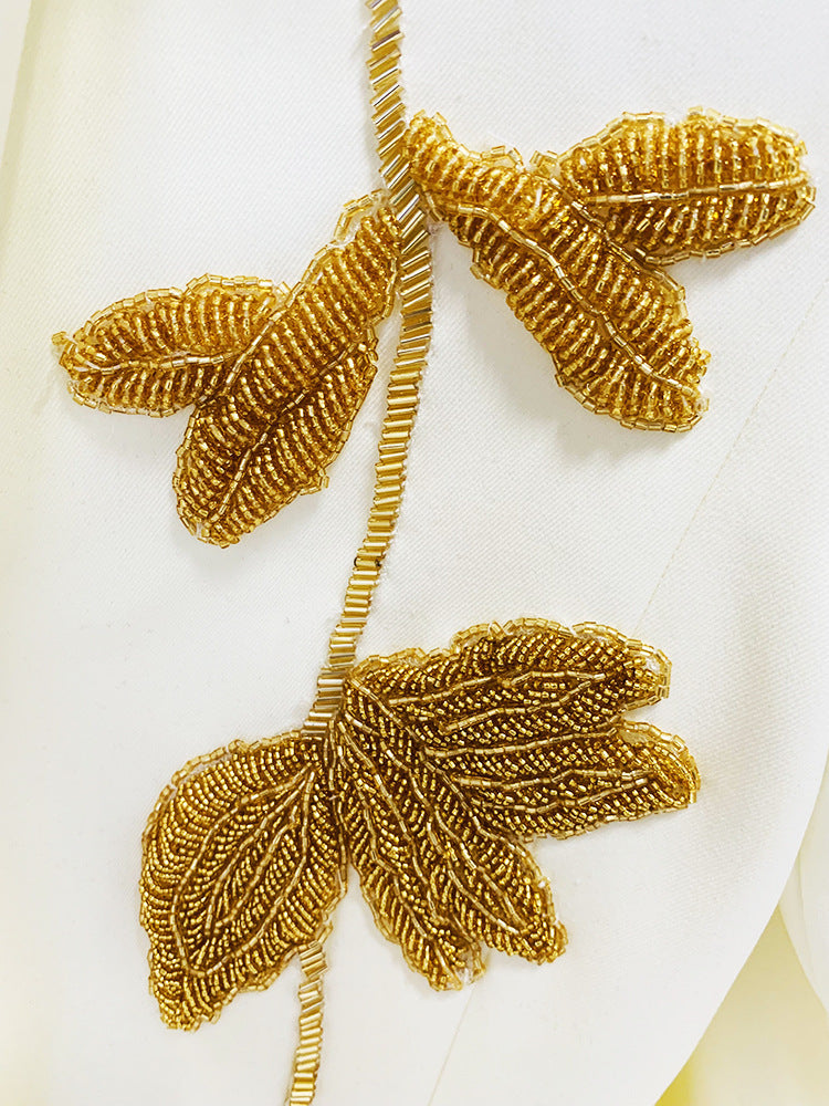 Add a touch of whimsy to your wardrobe with our embroidered peplum blazer in white. The peplum silhouette creates a flattering shape, while the intricate embroidery adds a playful twist. Perfect for both work and play, this blazer is sure to make a statement and turn heads wherever you go!