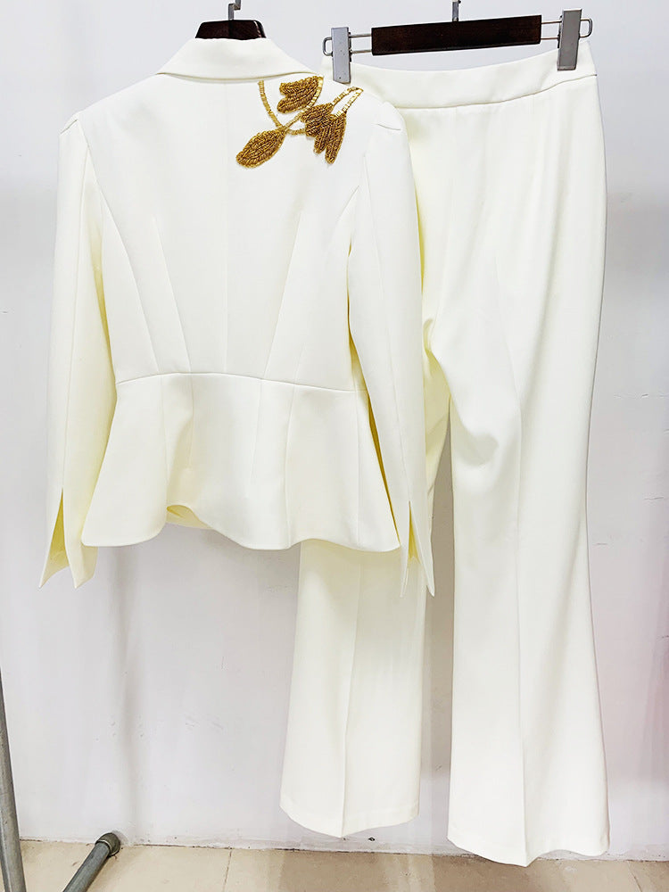 ABBA EMBROIDERED PEPLUM BLAZER SUIT