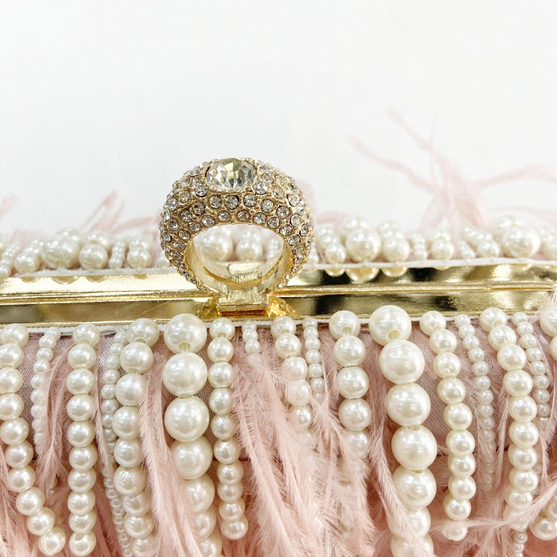FEATHER PEARL CHAIN CLUTCH