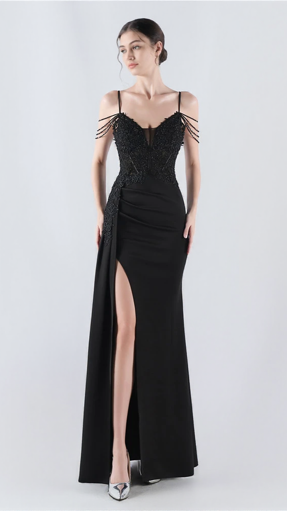 Introducing the FLOWER BEAD CORSET MAXI DRESS IN BLACK, a stunning piece that exudes elegance and grace. This dress is the perfect choice for any special occasion, whether it be a wedding or a formal event. The corset-style bodice beautifully accentuates your figure, creating a flattering silhouette that will surely turn heads. Adorned with delicate flower beadwork, this dress embodies femininity and sophistication. The maxi length adds a touch of glamour, allowing you to make a grand entrance wherever you go. Designed with bridesmaids in mind, the FLOWER BEAD CORSET MAXI DRESS IN BLACK is a dream come true for those seeking a stylish and memorable ensemble. Step into the spotlight and radiate confidence with this mesmerizing dress that combines fashion and allure. Upgrade your wardrobe with the FLOWER BEAD CORSET MAXI DRESS IN BLACK and make a lasting impression at your next special event.