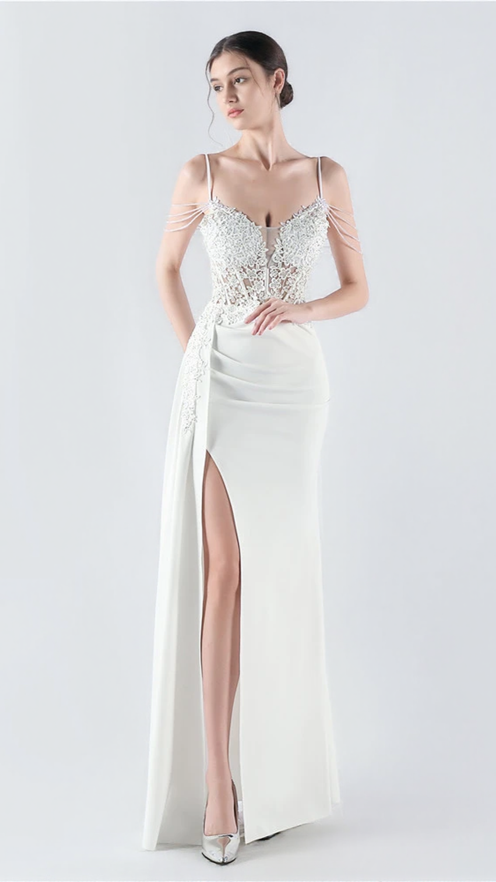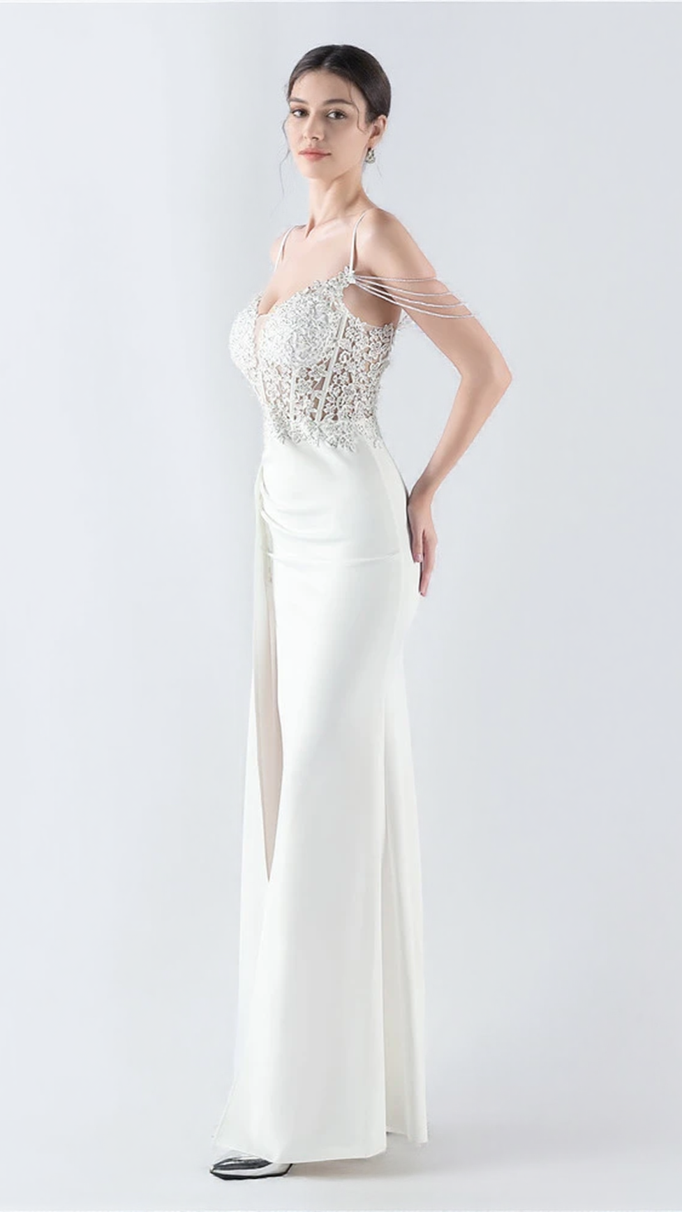 Introducing the FLOWER BEAD CORSET MAXI DRESS IN WHITE, a stunning piece that exudes elegance and grace. This dress is the perfect choice for any special occasion, whether it be a wedding or a formal event. The corset-style bodice beautifully accentuates your figure, creating a flattering silhouette that will surely turn heads. Adorned with delicate flower beadwork, this dress embodies femininity and sophistication. The maxi length adds a touch of glamour, allowing you to make a grand entrance wherever you go. Designed with bridesmaids in mind, the FLOWER BEAD CORSET MAXI DRESS IN WHITE is a dream come true for those seeking a stylish and memorable ensemble. Step into the spotlight and radiate confidence with this mesmerizing dress that combines fashion and allure. Upgrade your wardrobe with the FLOWER BEAD CORSET MAXI DRESS IN WHITE and make a lasting impression at your next special event.