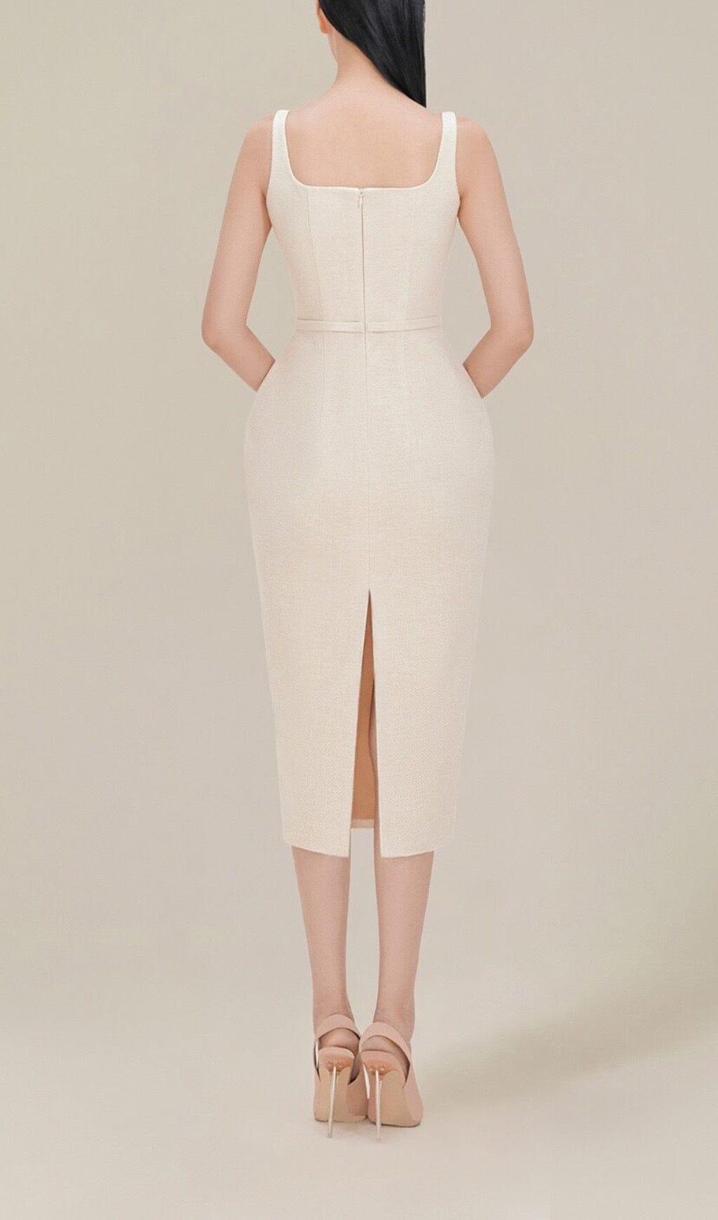 • Suspender design adds a playful and chic element to the dress