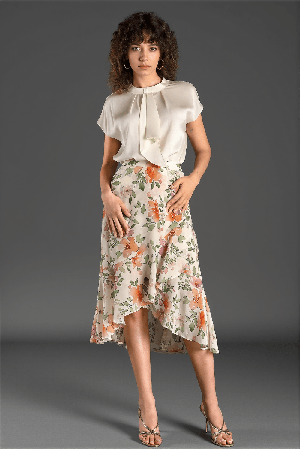 Gallellis Silk Embellished Shirt Top - Model's Look