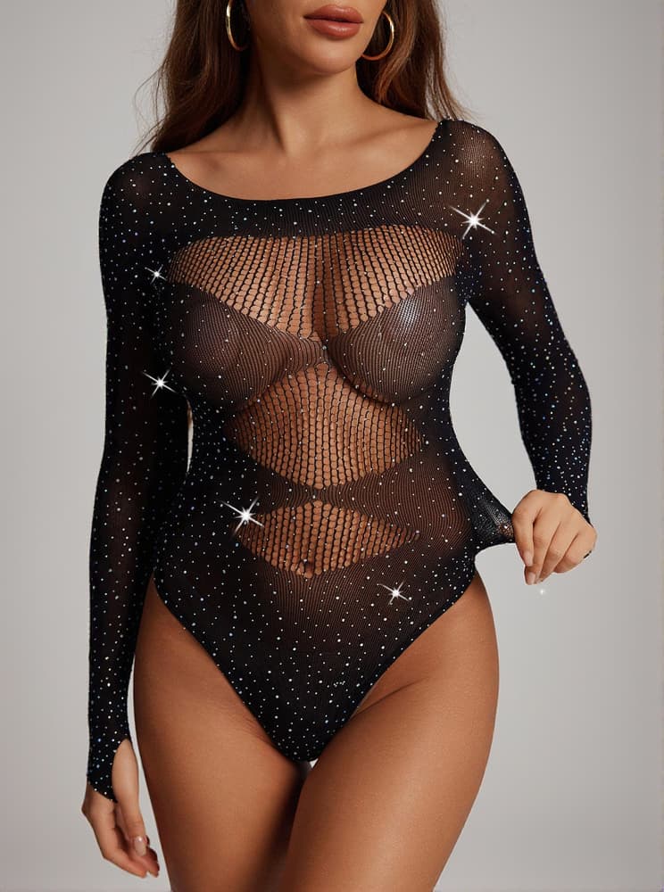Giles Long Sleeve Rhinestone Knit Bodysuit