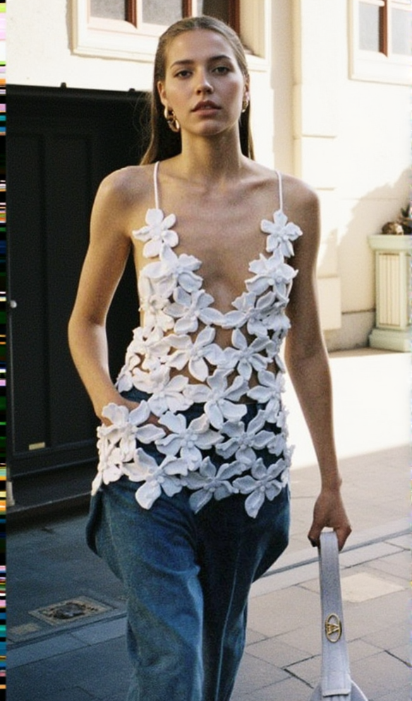 Made from high-quality cotton, this top features intricate cutouts and appliqués for a unique and chic look. Perfect for any occasion, this top is sure to turn heads and make you feel confident and comfortable.