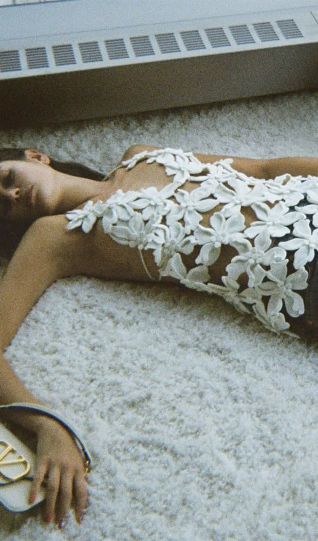 GRISELDA CUTOUT APPLIQUÉD COTTON TOP IN WHITE