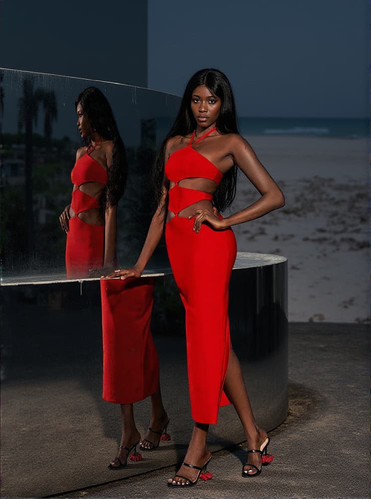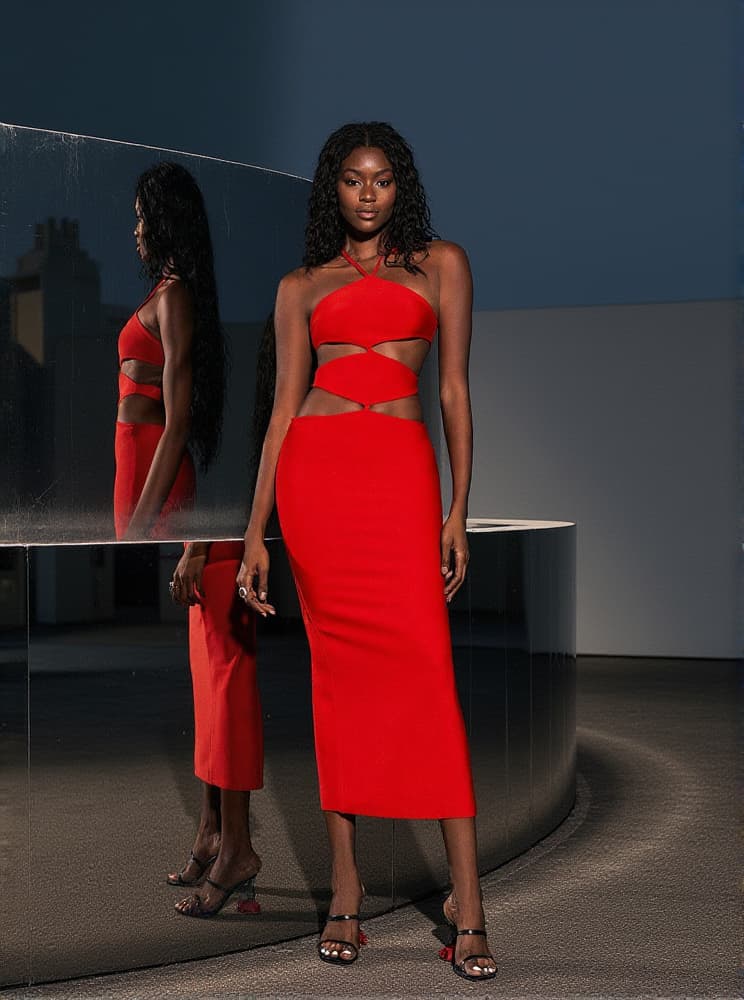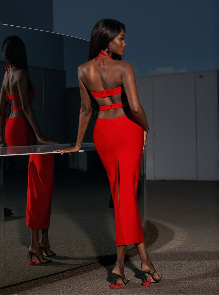 Add drama to your wardrobe with this bold Hedwig Cutout High Split Bandage Dress In Red. Featuring a daring, high split design and cut-out detailing, this sophisticated dress will ensure you make an unforgettable entrance. Make a statement in this timeless piece!
