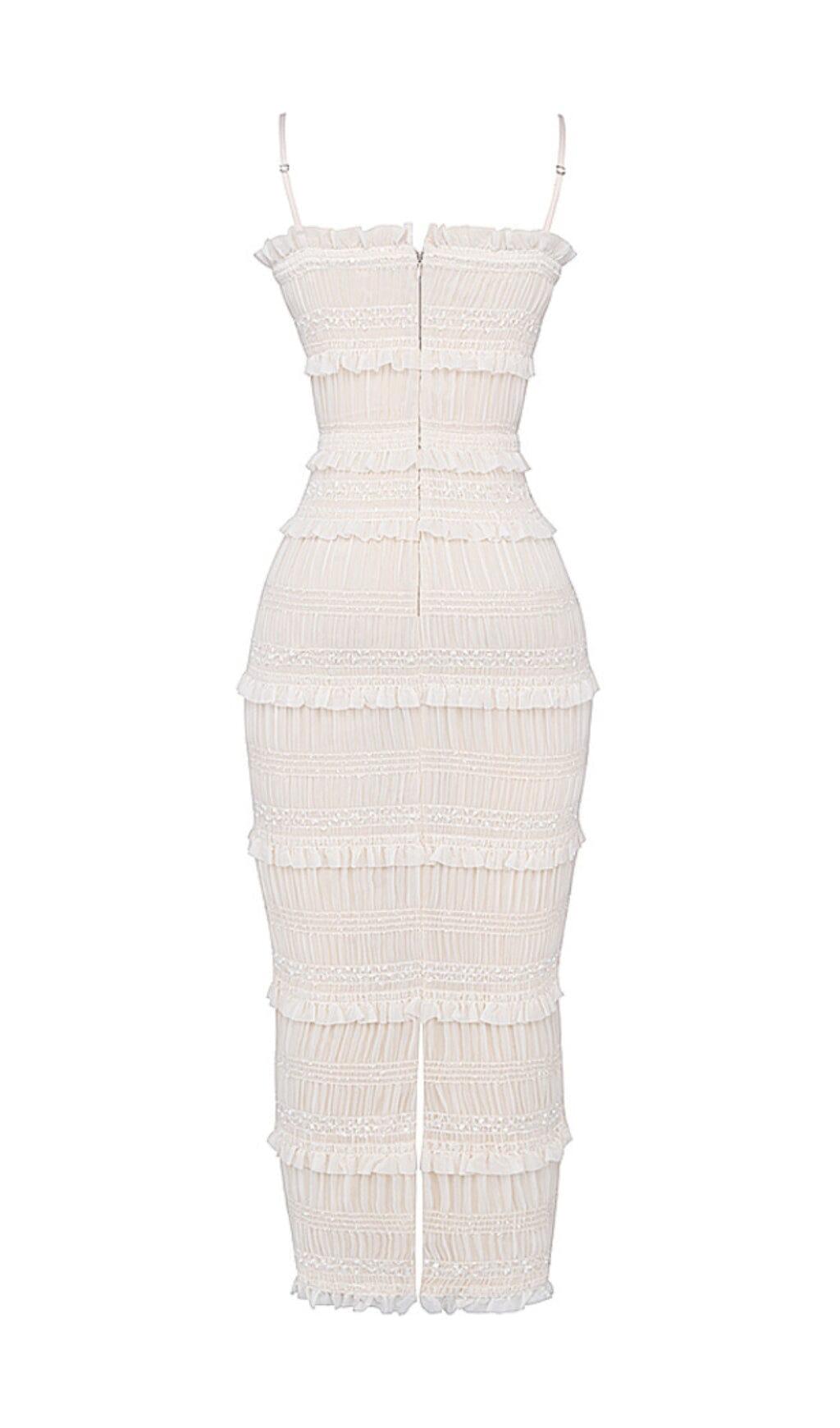 IVORY SEQUIN PLEAT MAXI DRESS