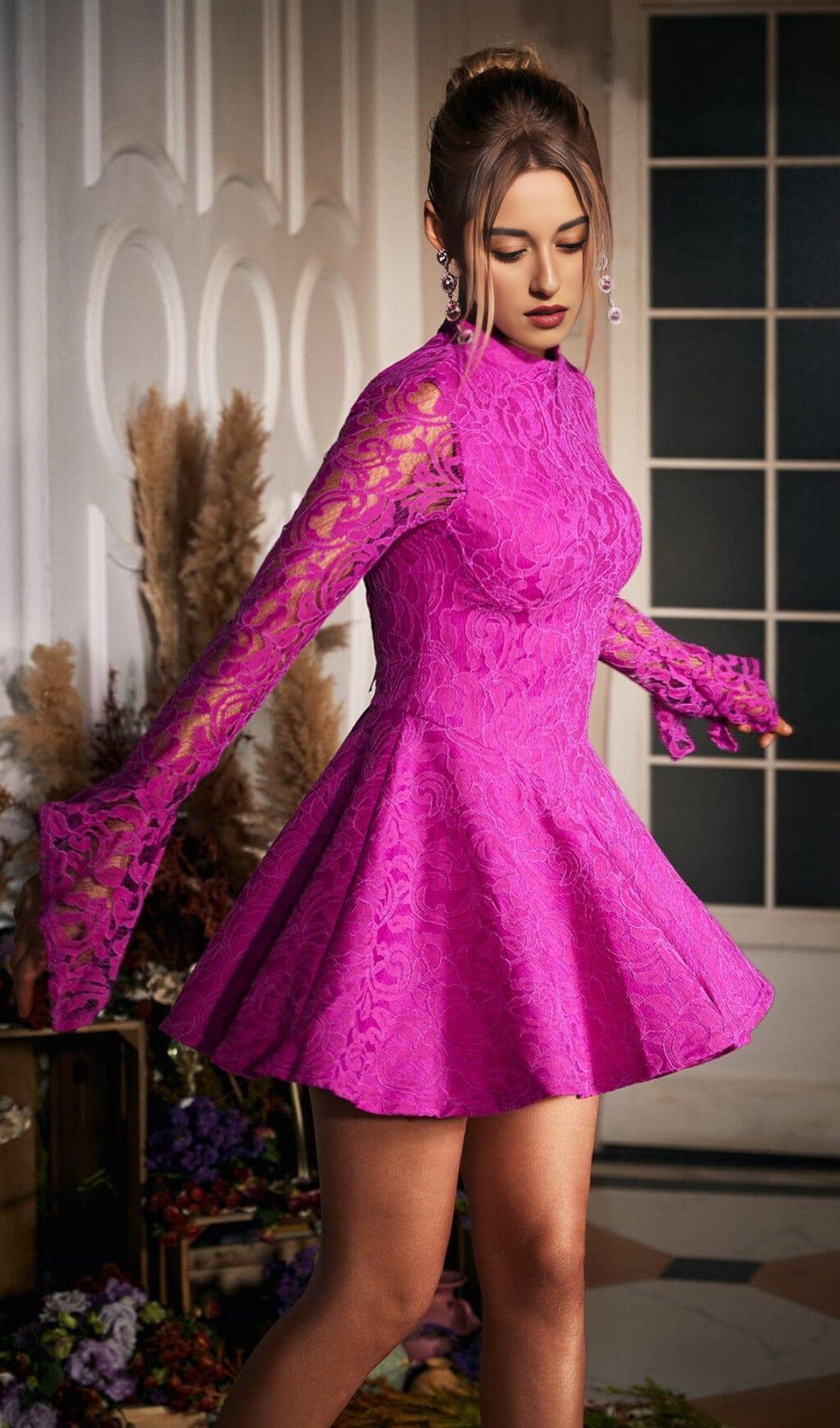 LONG SLEEVE HOLLOW LACE DRESS