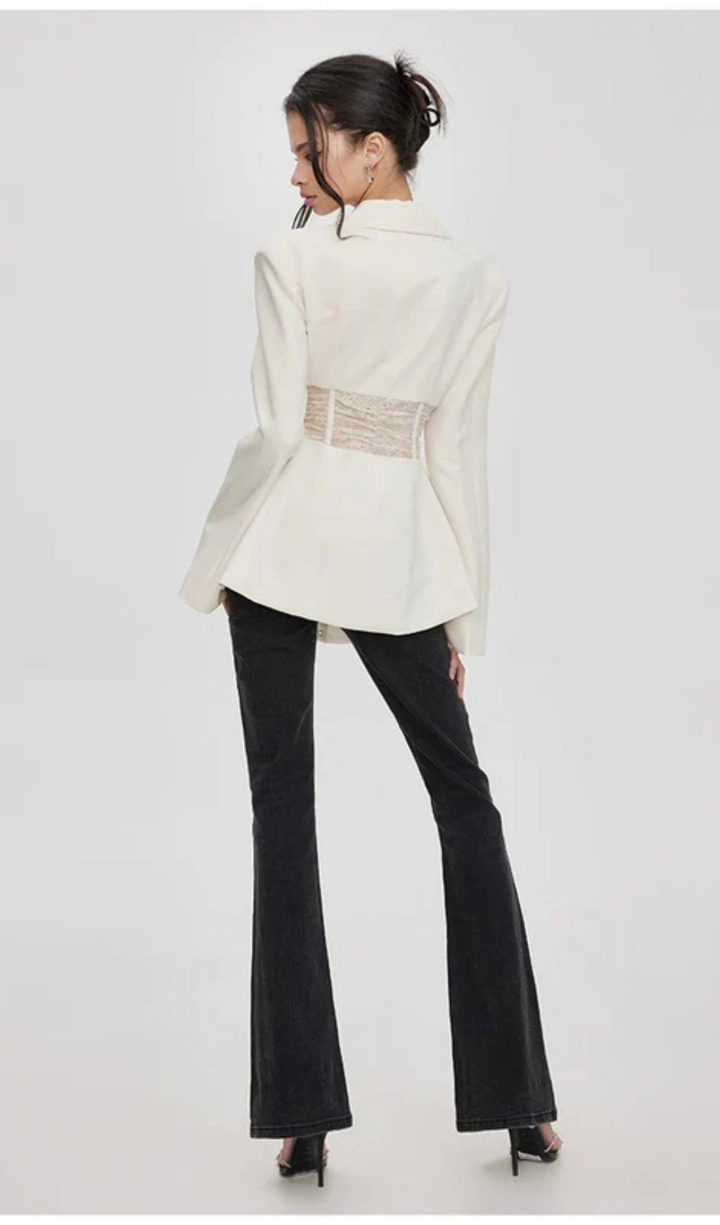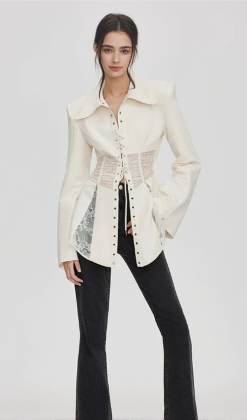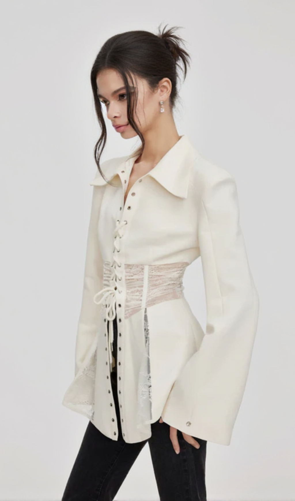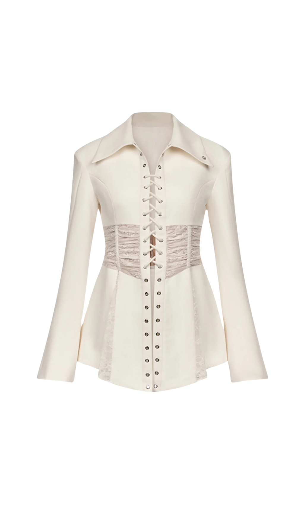 Melany See Through Lace Up Shirt in White