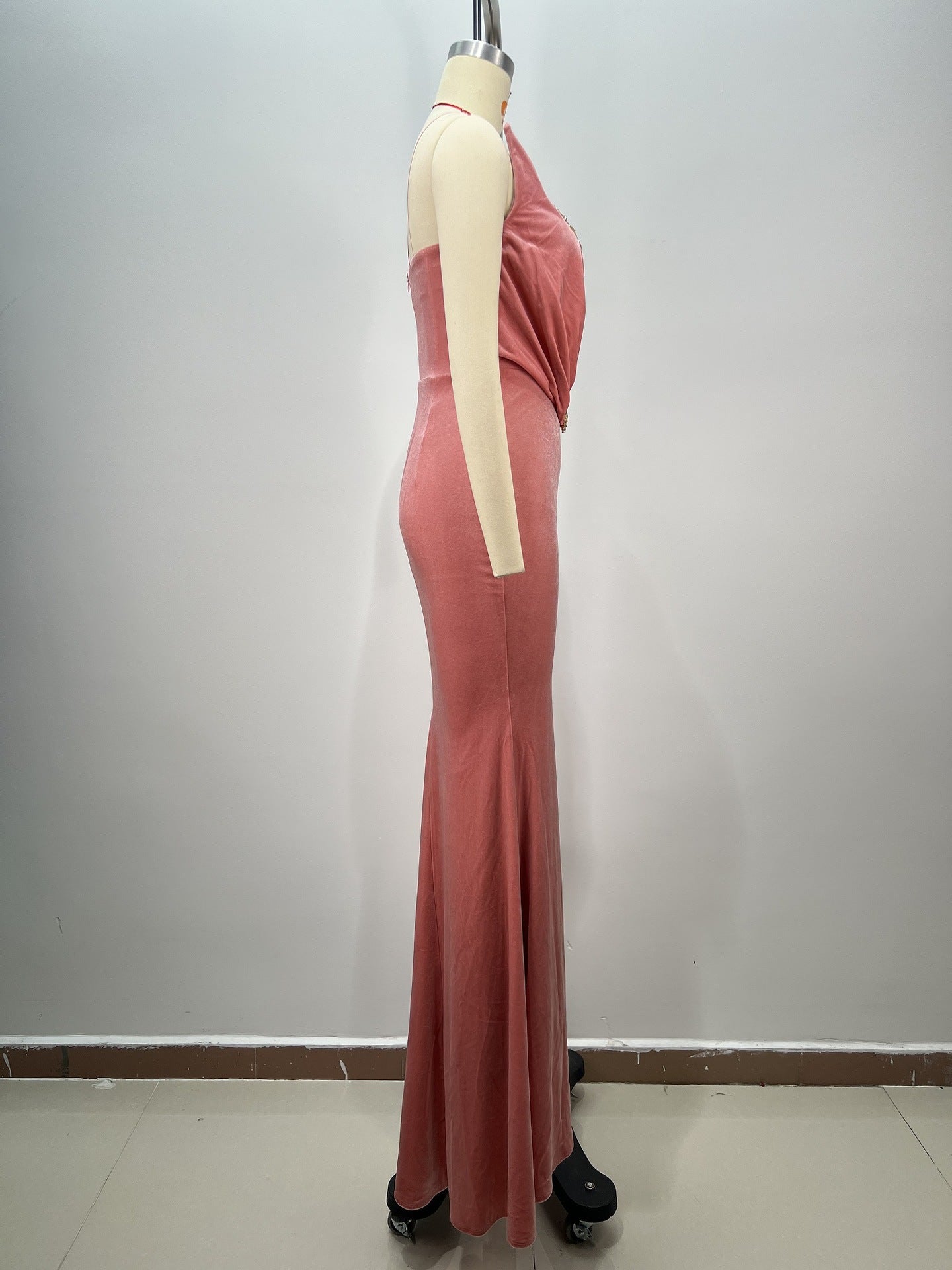 off-shoulder crystal embellished bodycon maxi dress in Iceberry Pink