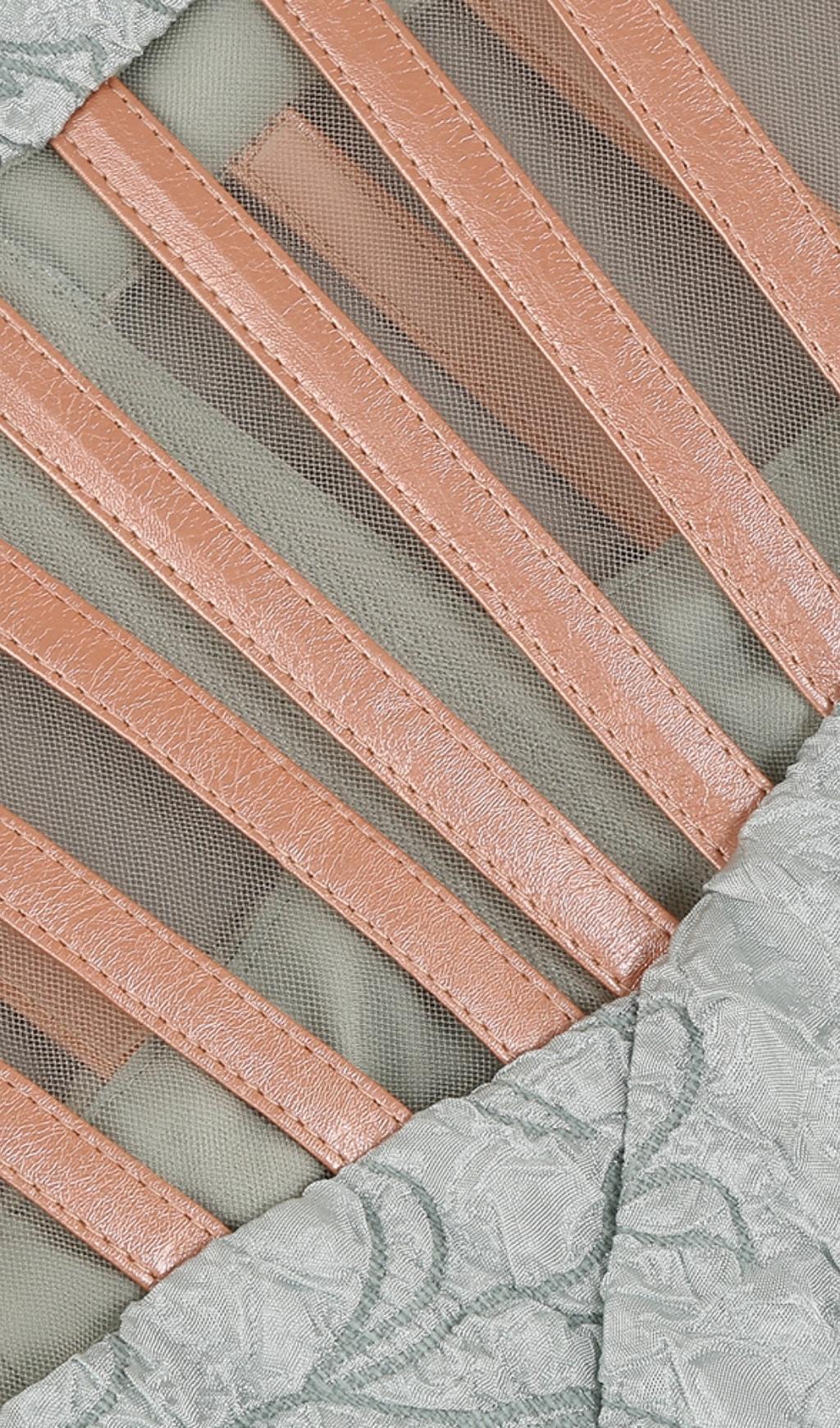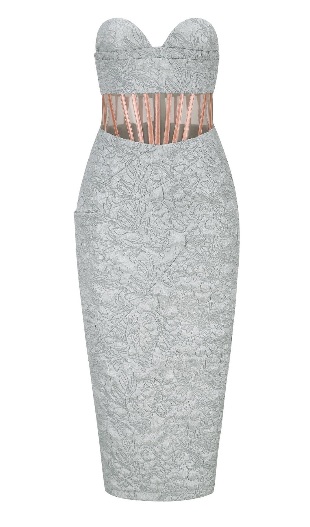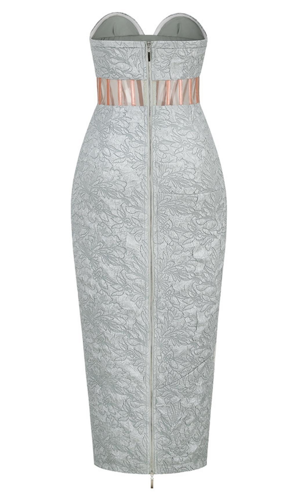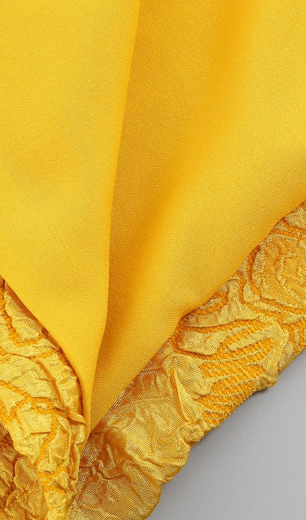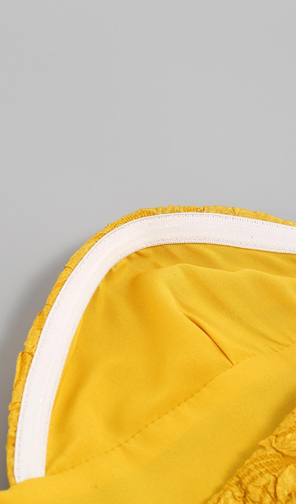 JACQUARD STRAPLESS MIDI DRESS IN YELLOW