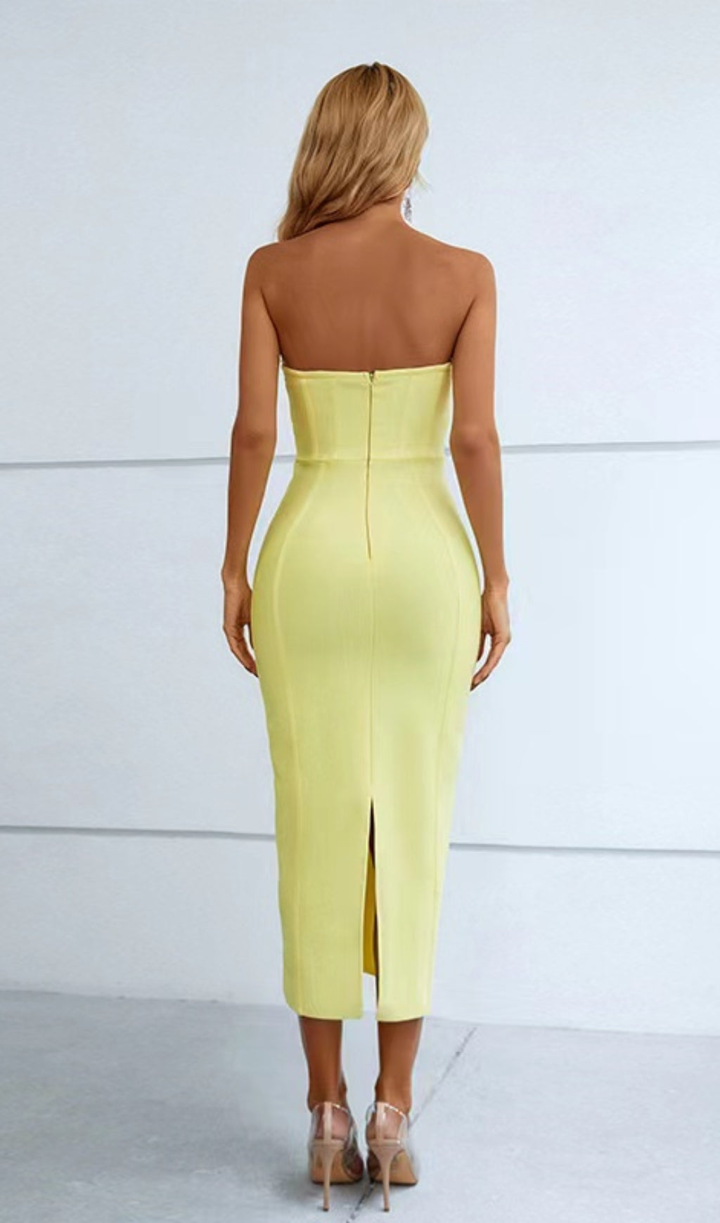Discover your inner sunshine in the Patchwork Strapless Bandage Dress In Yellow! Perfect for any occasion, this dress is crafted with a beautiful patchwork design and crafted to fit and flatter your shape. Be the light of the party and make a statement with this stunning and eye-catching dress!