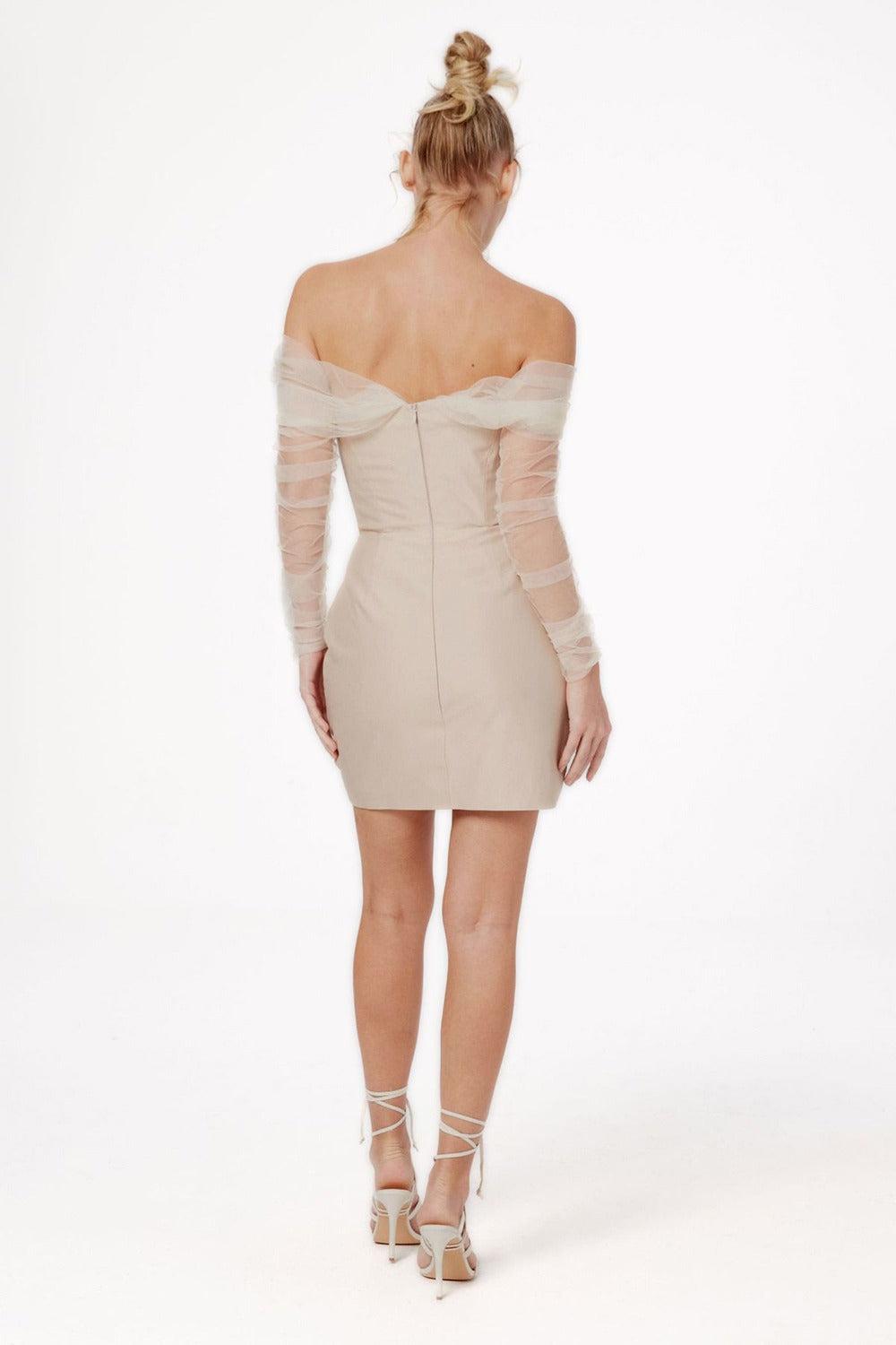 STRAPLESS BANDAGE MINI DRESS IN BEIGE