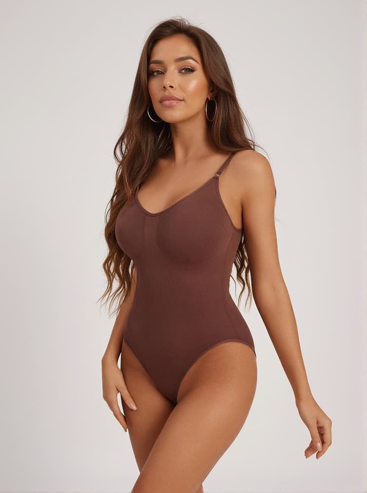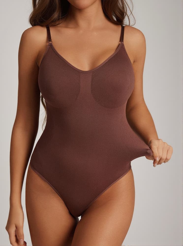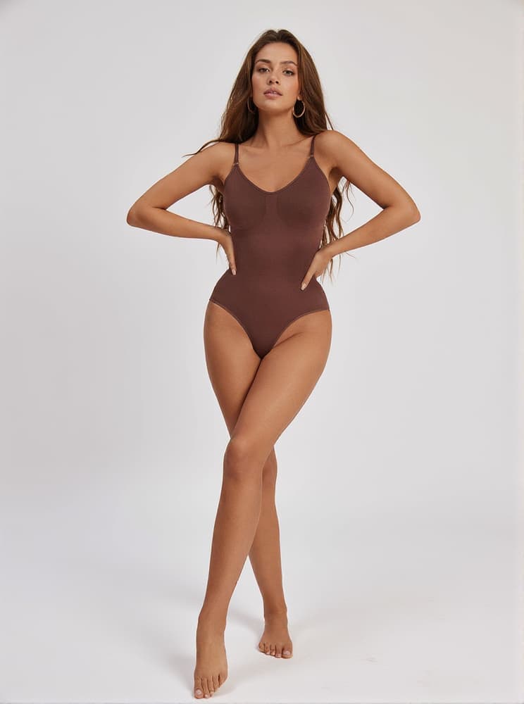 Obi Seamless Sculpt Plunge Thong Bodysuit In Coffee