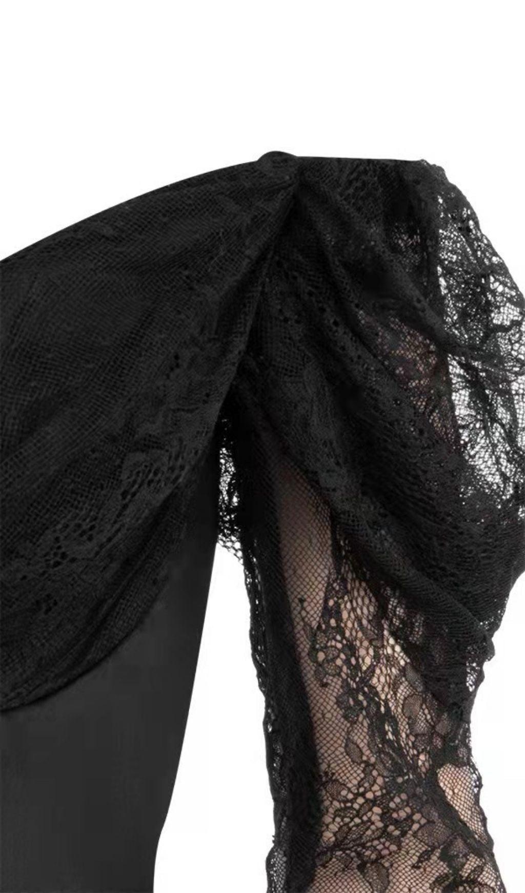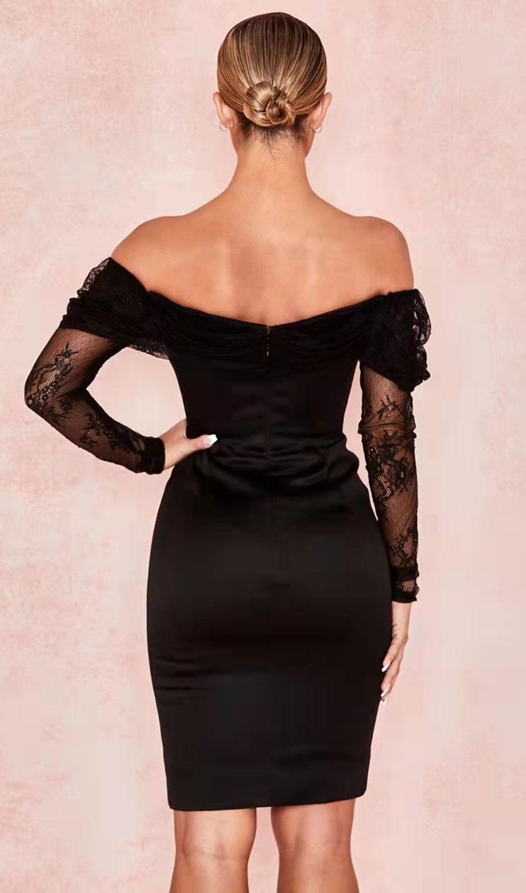 OFF SHOULDER CORSET MIDI DRESS IN BLACK