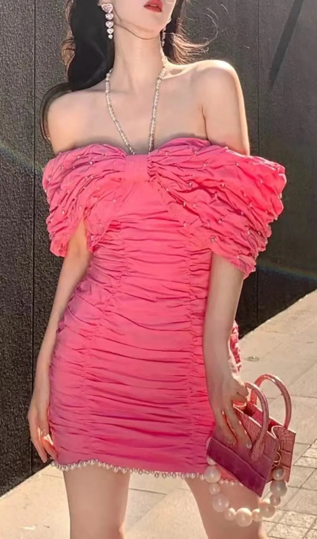 PEARL BOWKNOT MINI DRESS