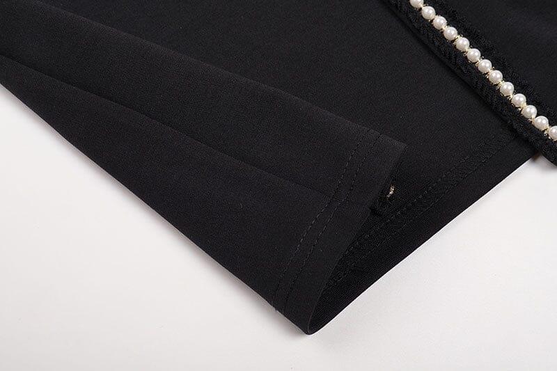 "Shine like a pearl in this stunning jersey maxi dress in black. Adorned with beautiful pearl embellishments, this dress is the perfect blend of elegance and comfort. Ideal for any occasion, you'll turn heads and feel fabulous all day (and night) long. Don't be afraid to embrace your inner glam with this dress!"