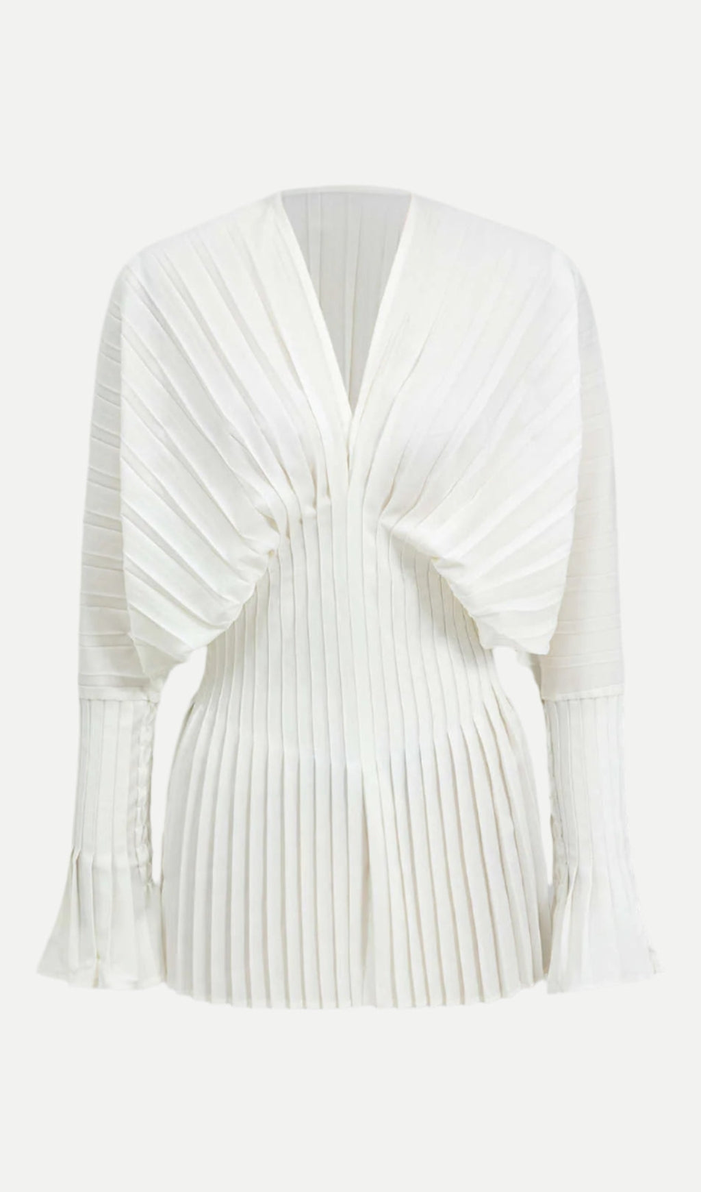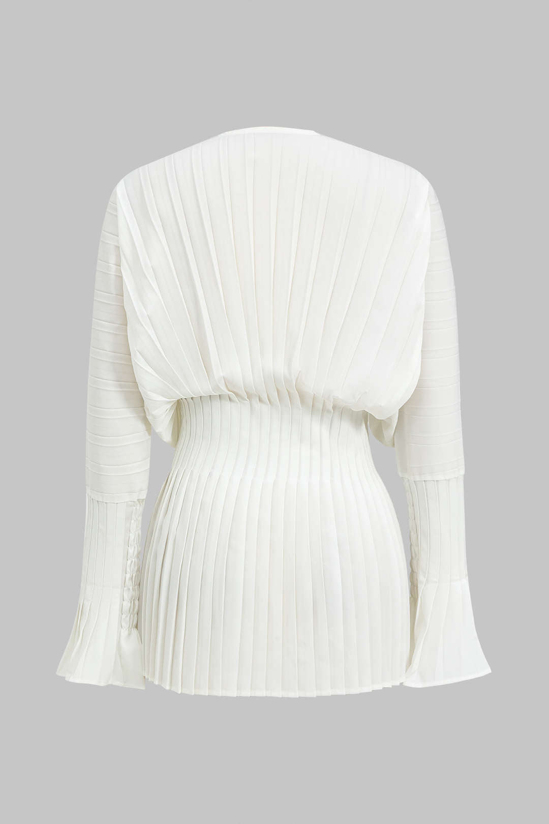 Pleated Bell Sleeve V-Neck Mini Dress in white