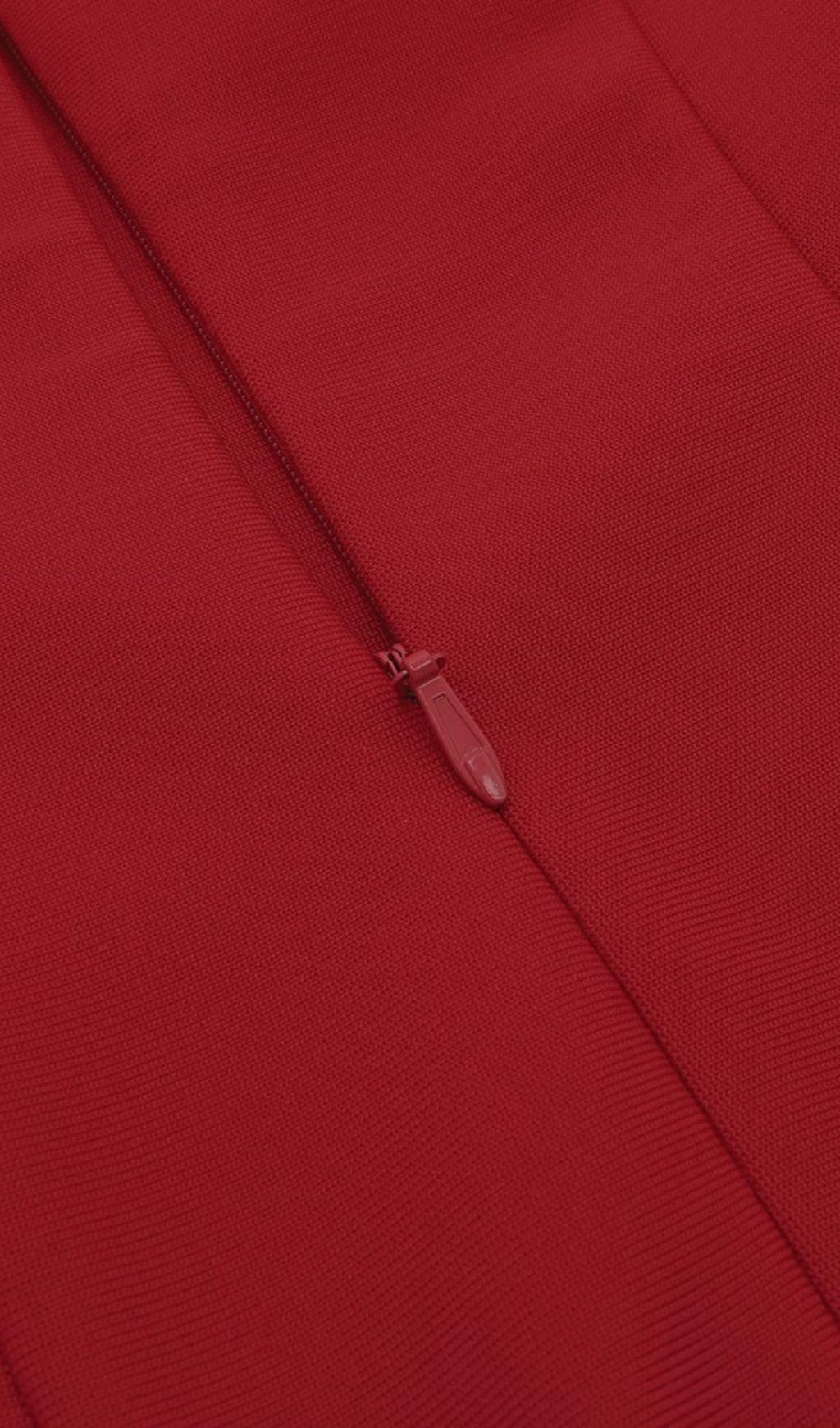RED PUFF SEELVE BANDAGE MIDI DRESS