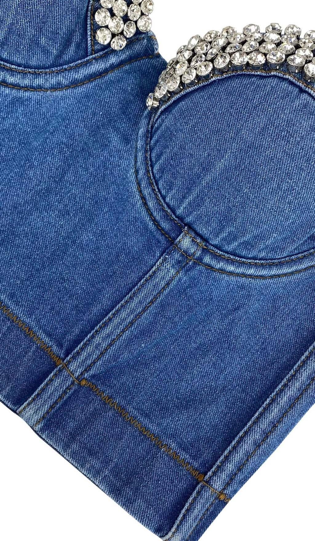 RHINESTONE BACKLESS CROPPED TOP IN NAVY BLUE
