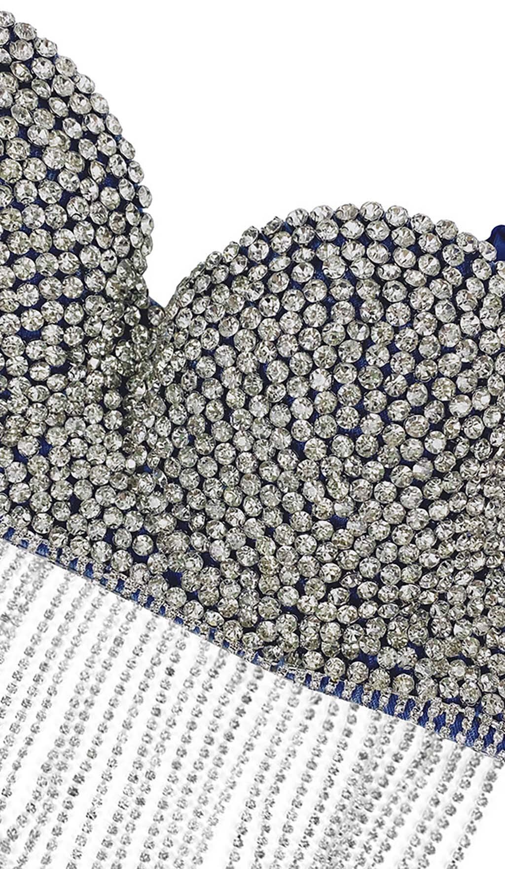 RHINESTONE TASSEL DENIM CROPPED TOP IN BLUE