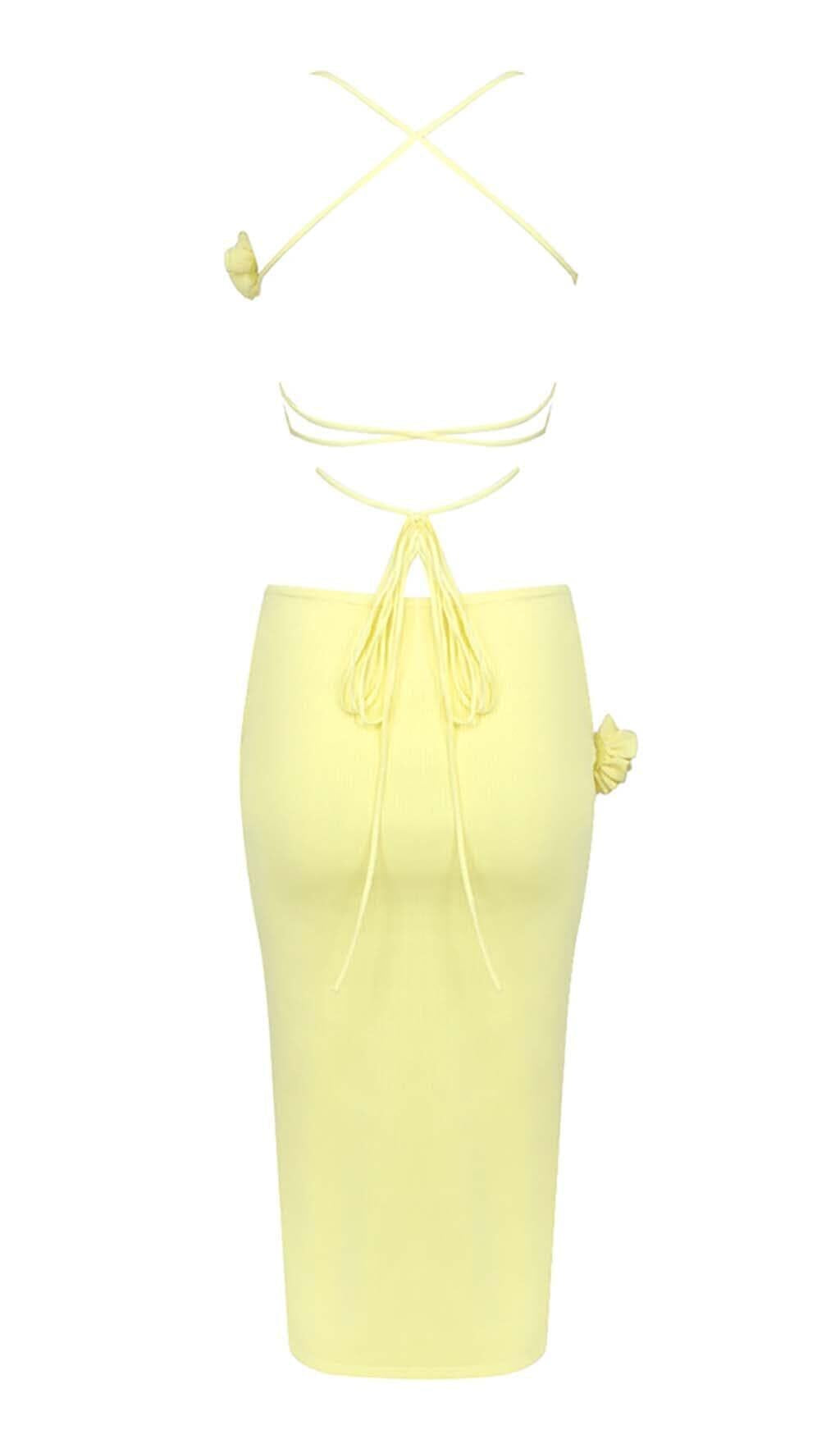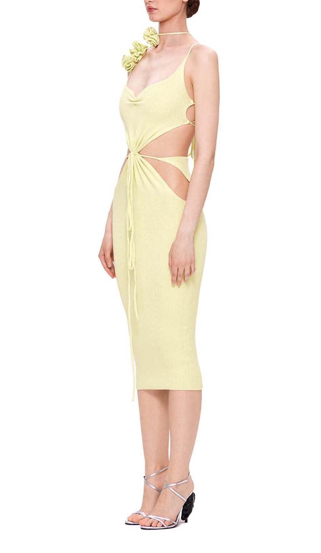 RIBBED CUT OUT MIDI DRESS IN YELLOW