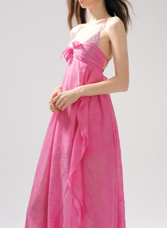 This Rose Jacquard Patchwork Asymmetric Ruffle Tailored Dress combines sophisticated tailoring with artistic design. Crafted from jacquard fabric featuring a delicate rose pattern, it showcases an asymmetric silhouette enhanced by elegant ruffle detailing. The tailored fit flatters the figure while the patchwork elements add texture and visual interest, making it a refined choice for formal occasions or stylish events.
