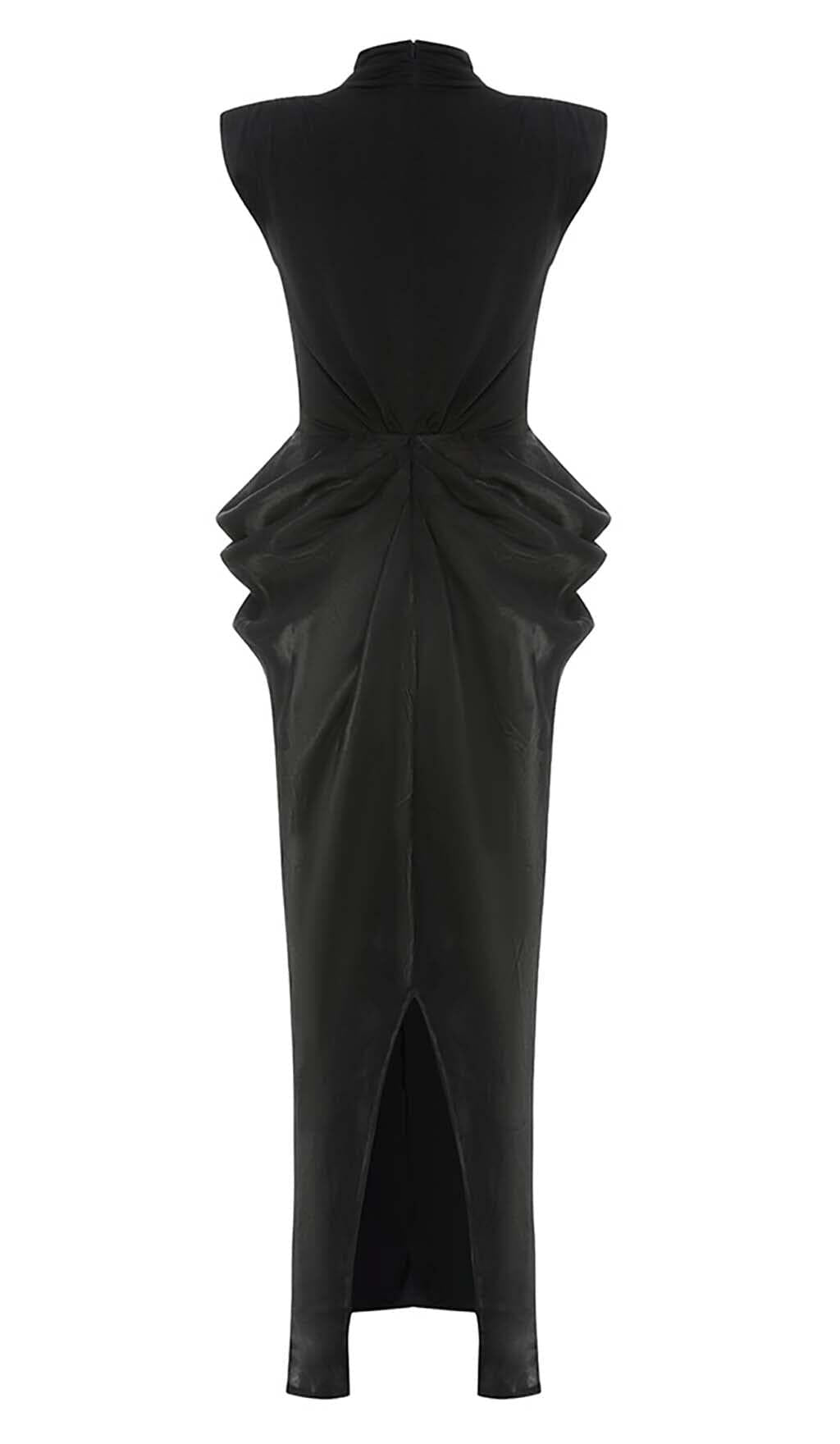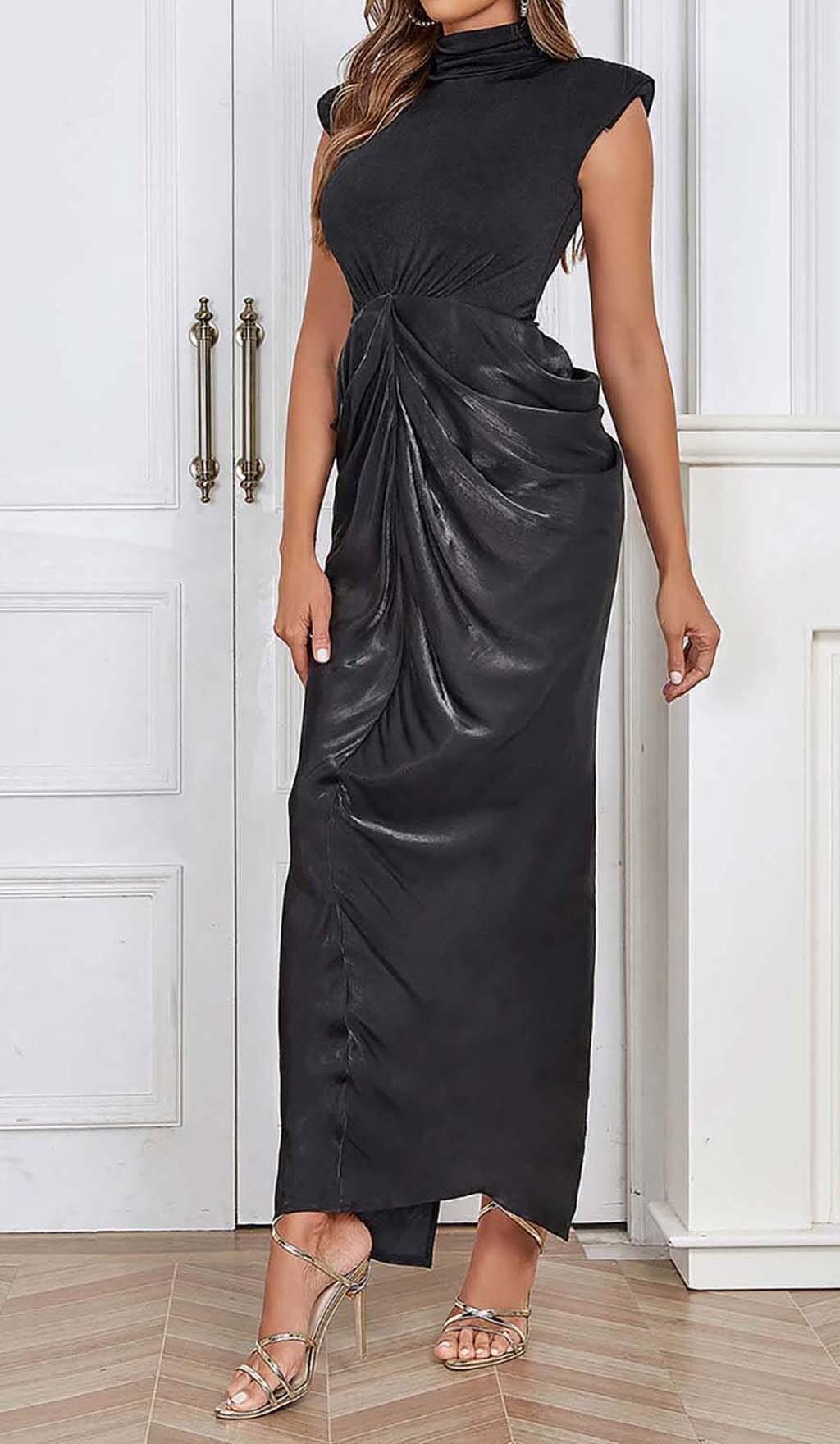 RUCHED OFF SLEEVE MAXI DRESS IN BLACK