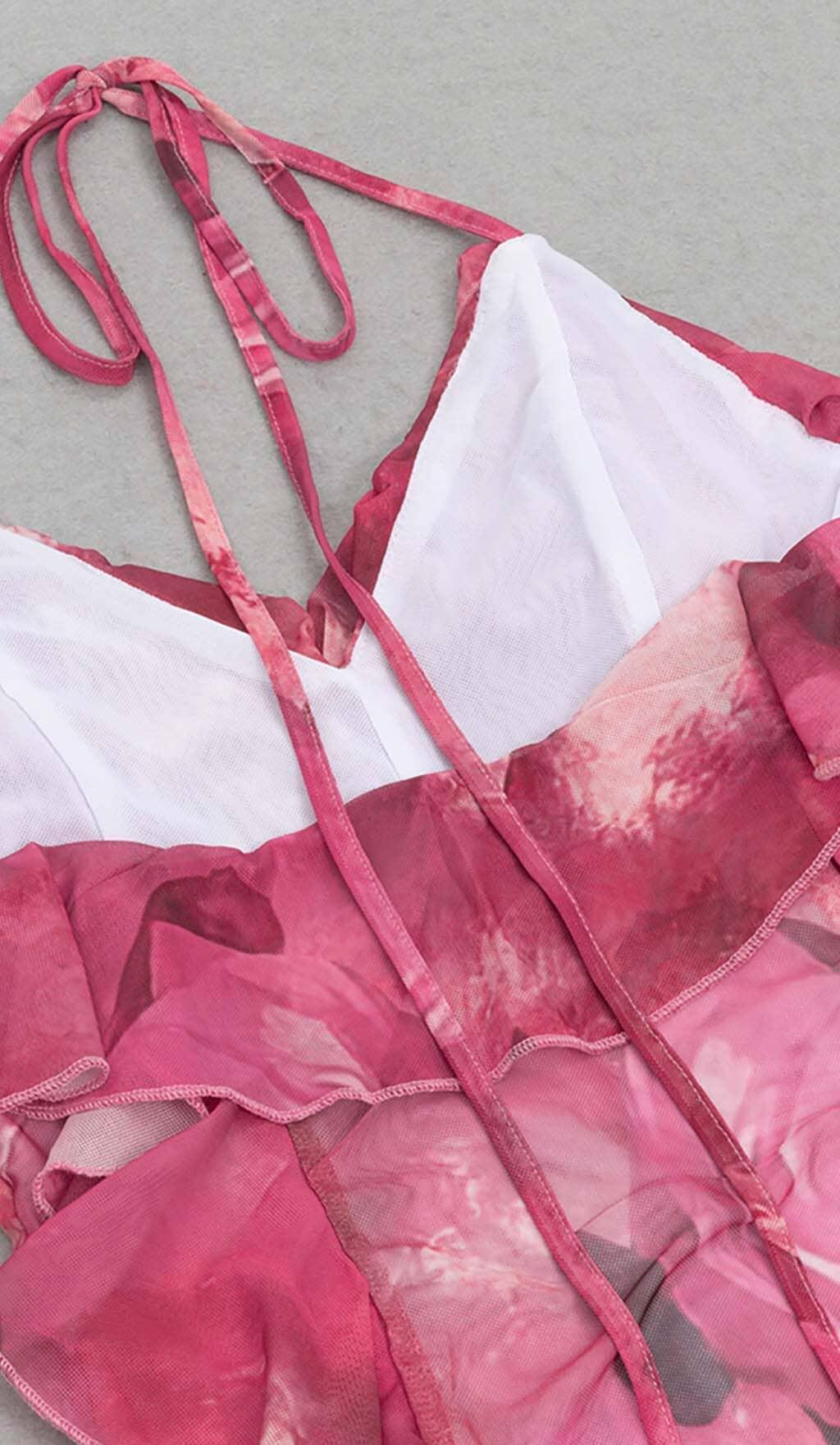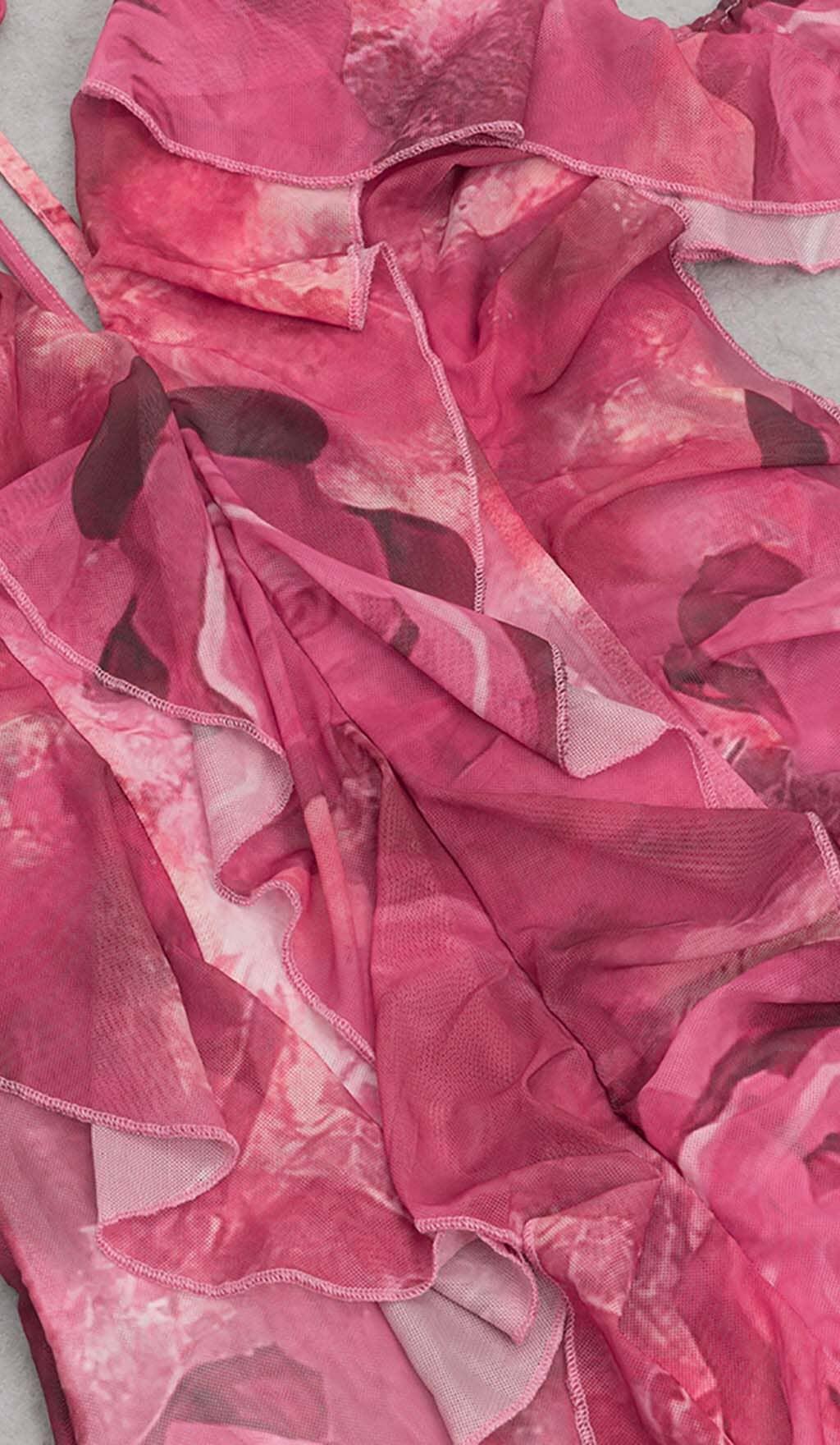 RUFFLE-TRIM PAISLEY-PRINT MAXI DRESS IN PINK