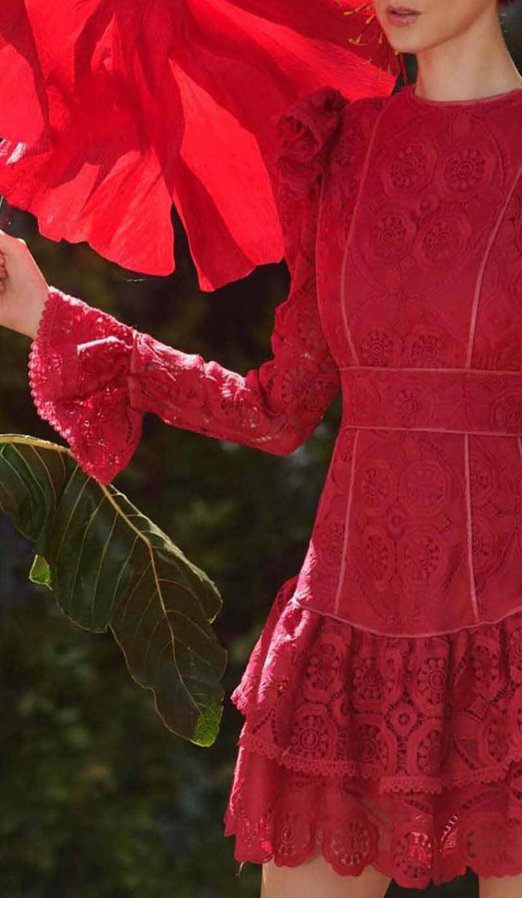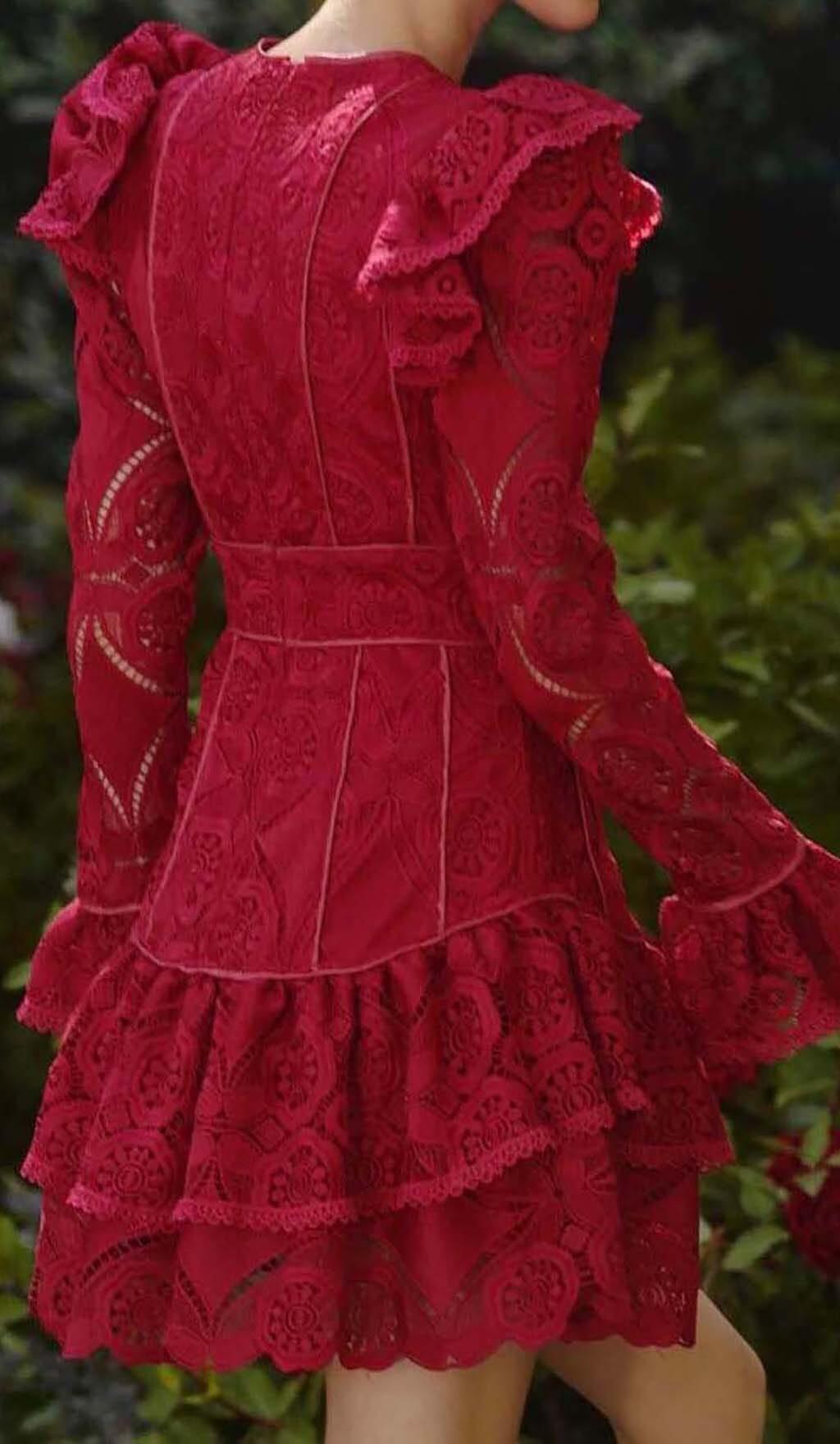 Elevate your cocktail style with the Ruffled Tiered Mini Dress in Red. This stunning dress, exclusively designed for CB, is perfect for making a statement at any special occasion.