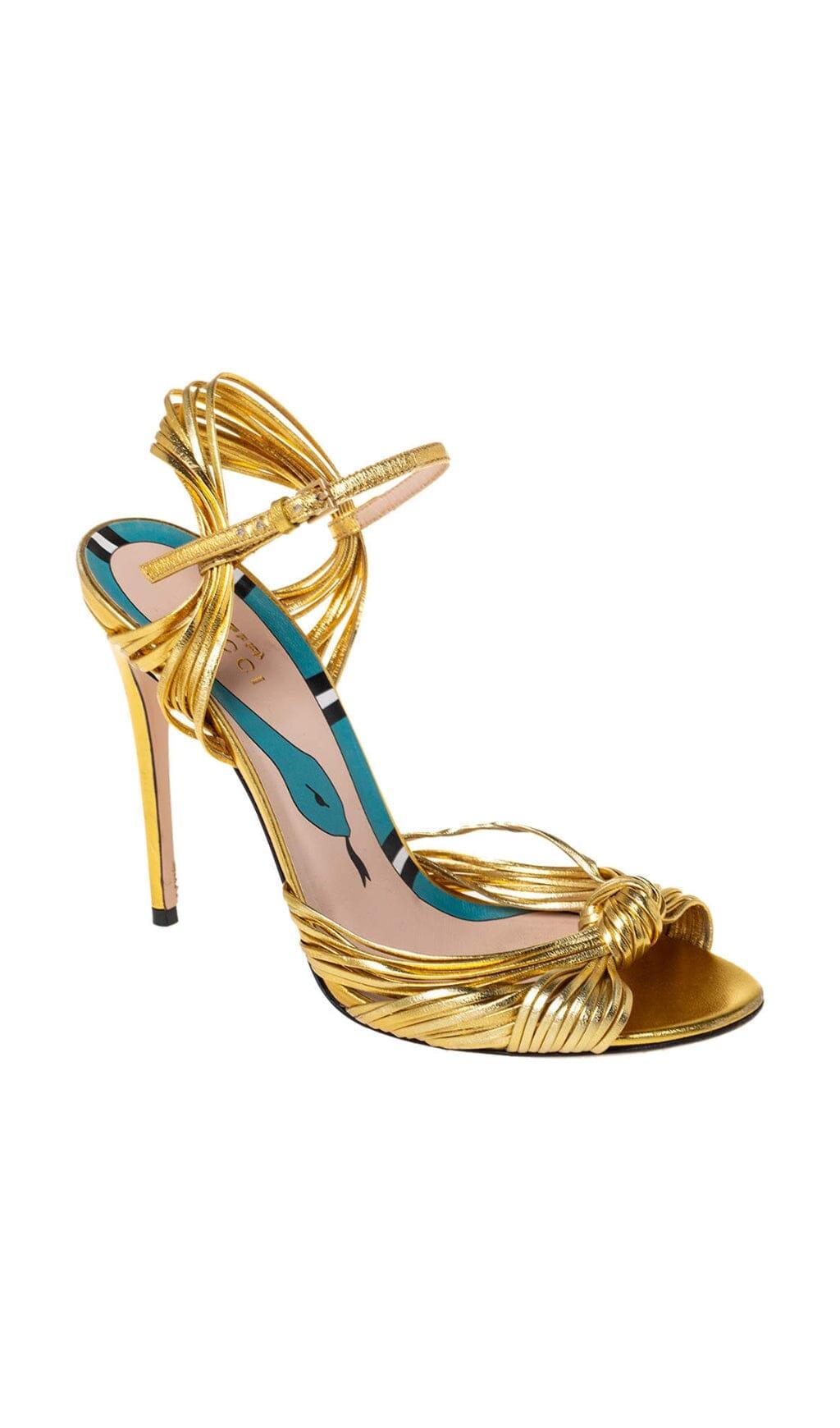 What sets our Strappy Heel Sandals in Gold apart from the rest is their unique design and attention to detail. The knot of metallic straps adds a touch of sophistication, making these sandals a true statement piece.