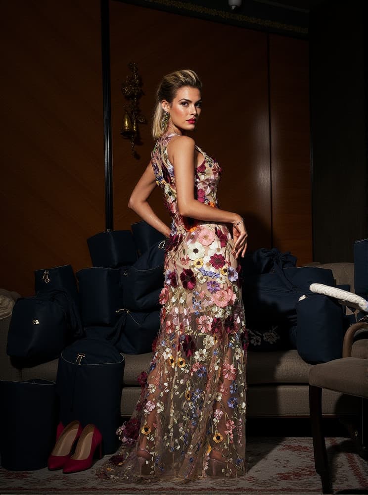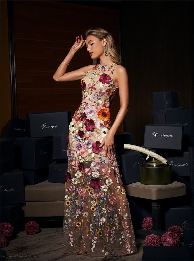 Saige Sleeveless Mesh Flower Maxi Dress In Blush