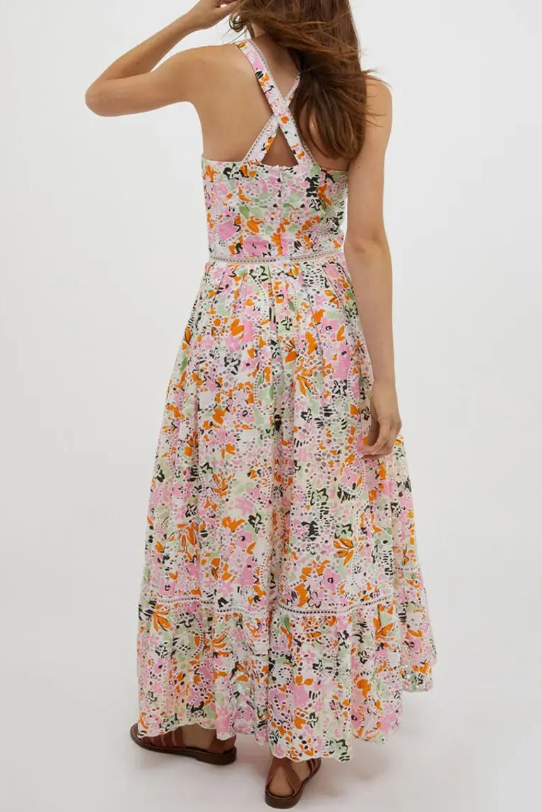 samantha Multicolor Cotton Floral Midi Dress
