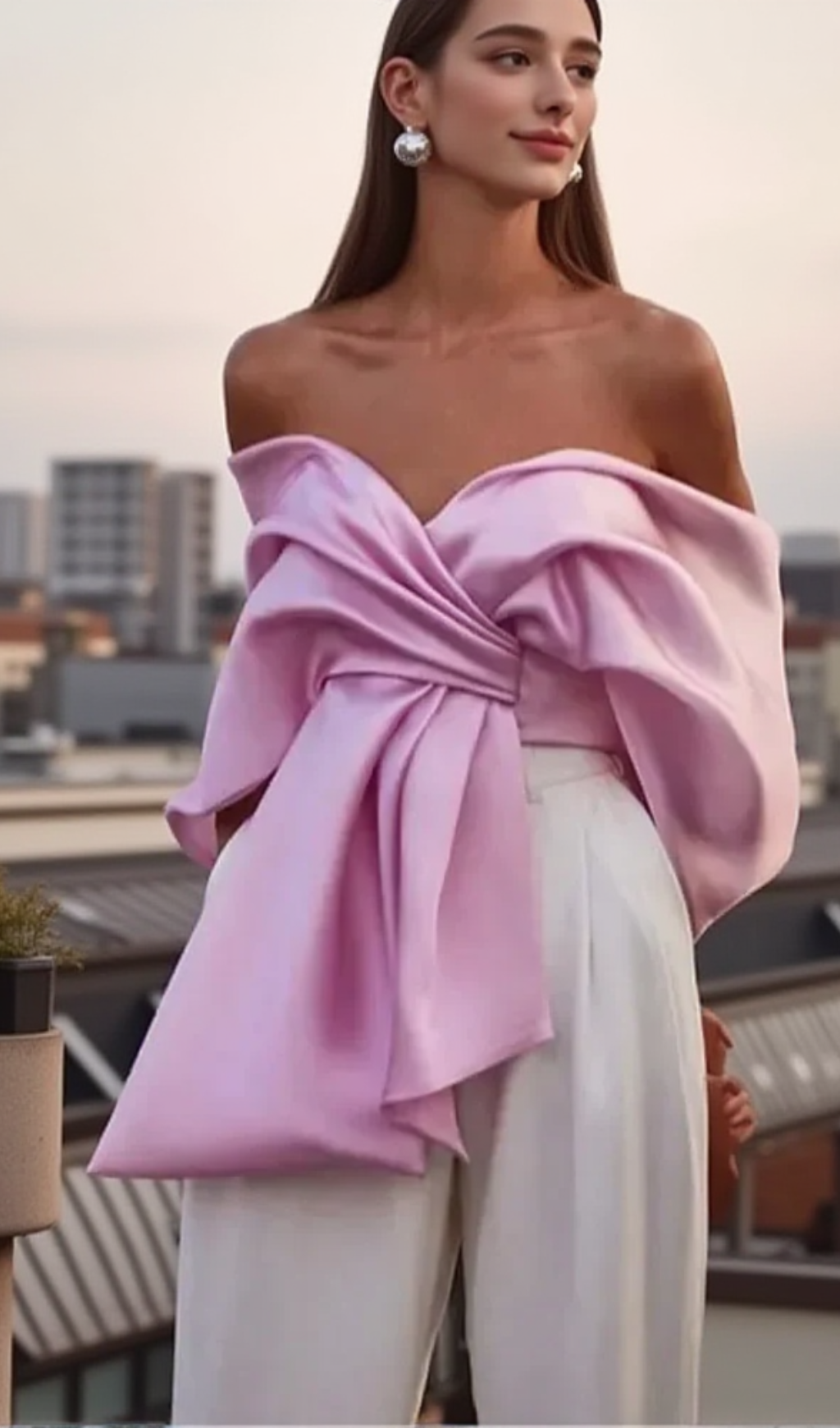 Samira Bow Cross Off Shoulder Satin Top