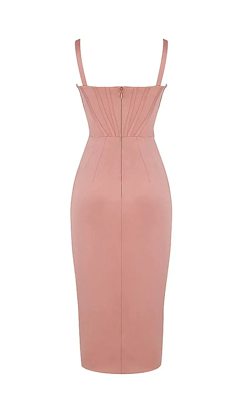 SATIN CORSET RUCHED MIDI DRESS