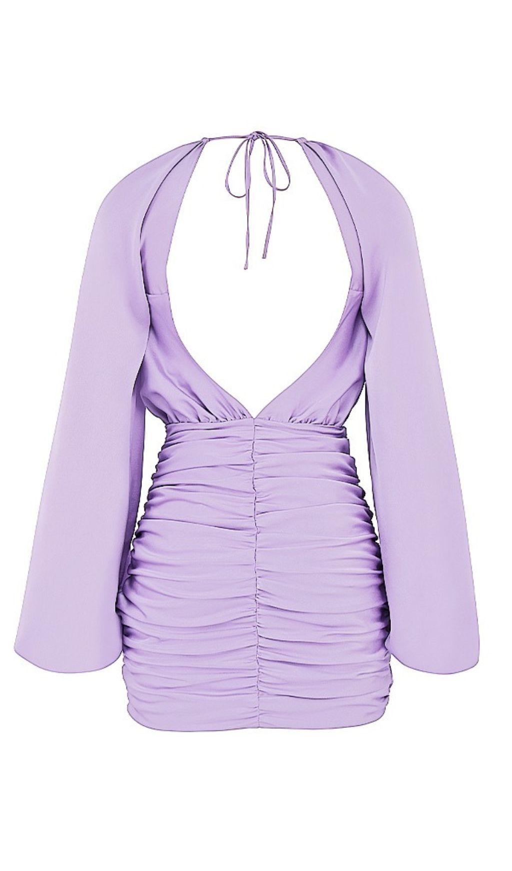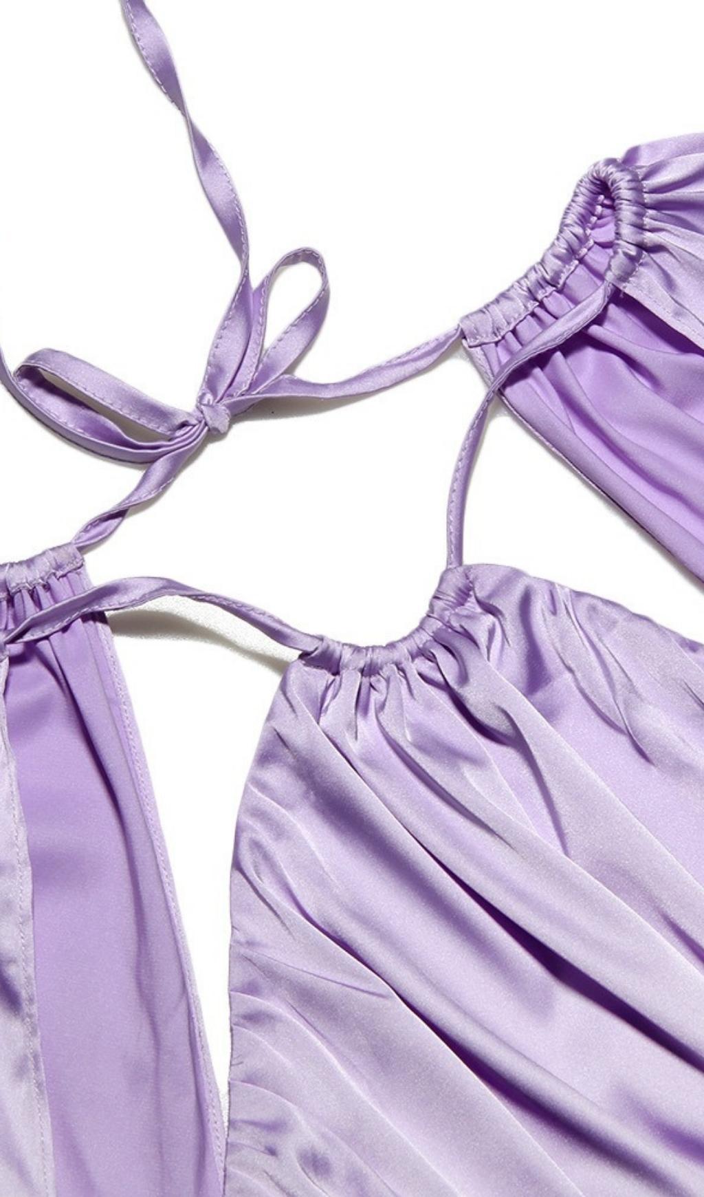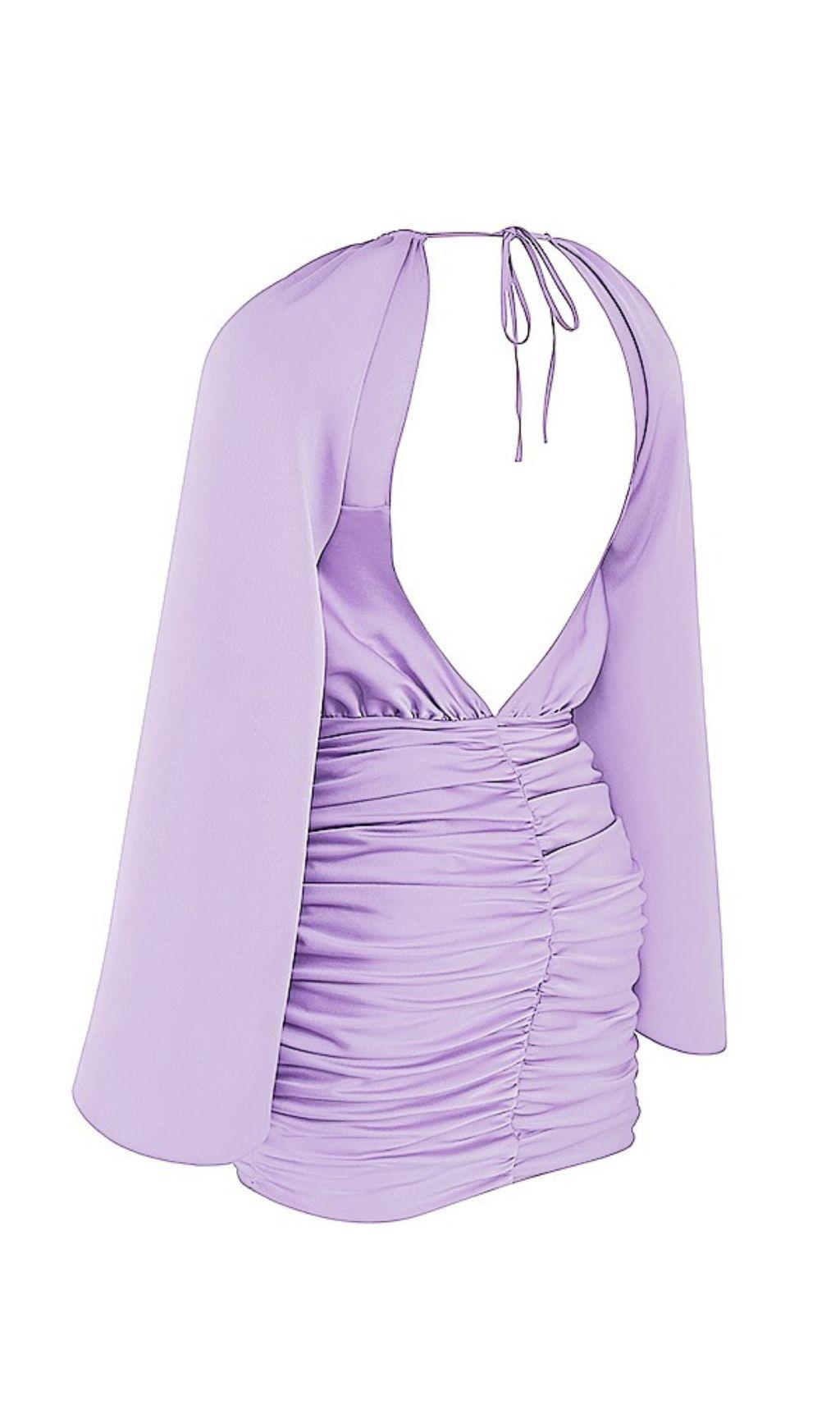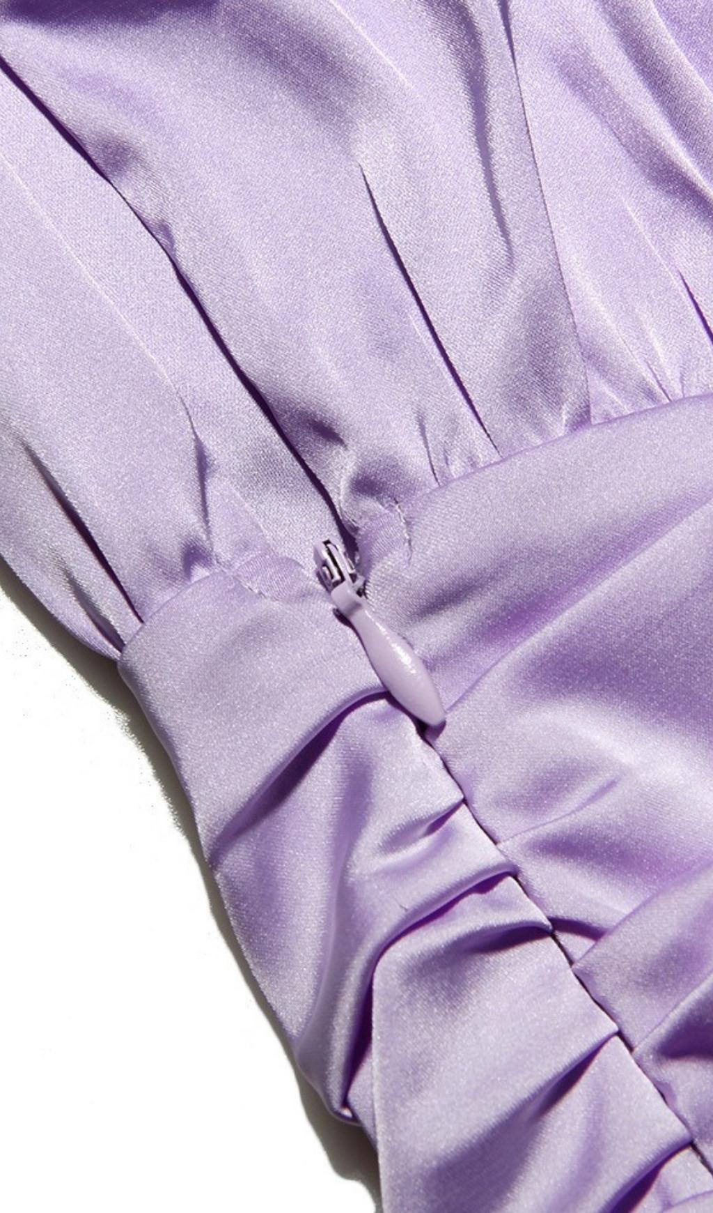 SATIN WRAP FRONT MINI DRESS IN PURPLE