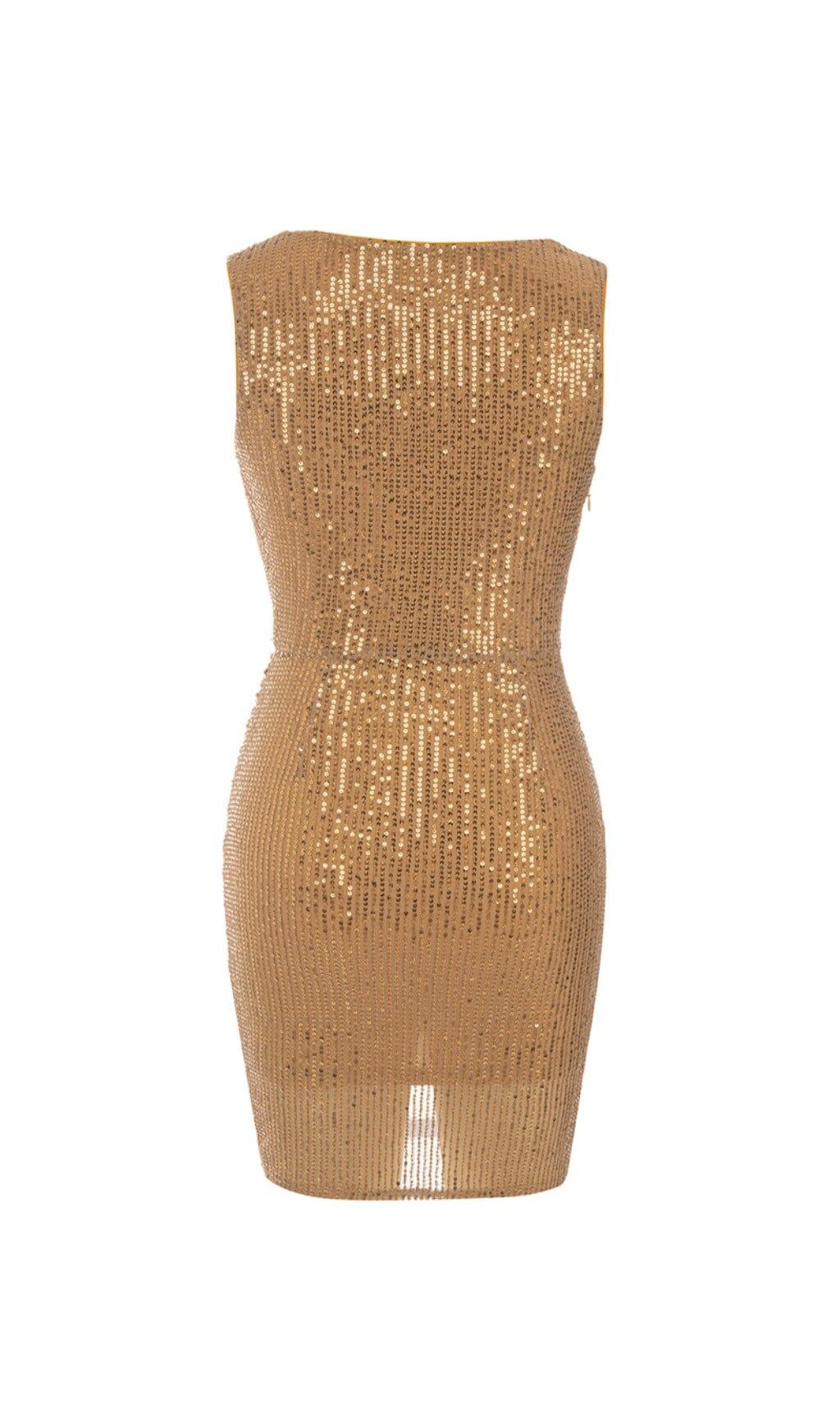 Elevate your style and make a statement with our Sequined Jersey Wrap-Effect Mini Dress in Gold. Embrace the glitz and glamour, and be the star of the show wherever you go. Order yours today and get ready to shine!
