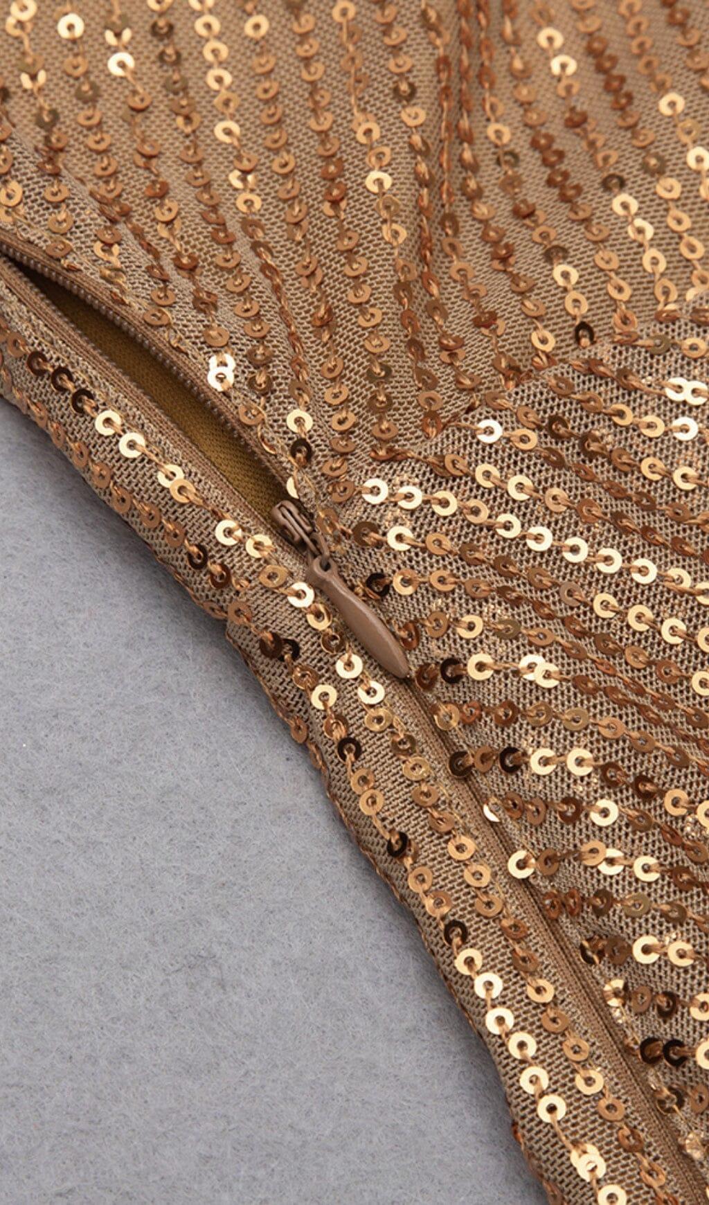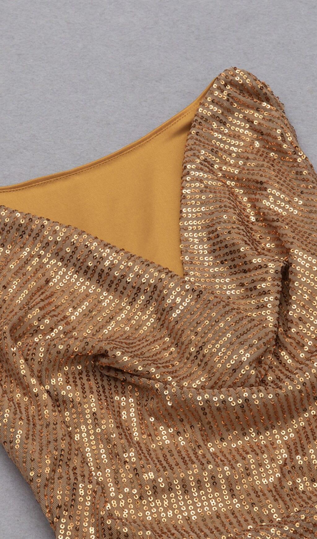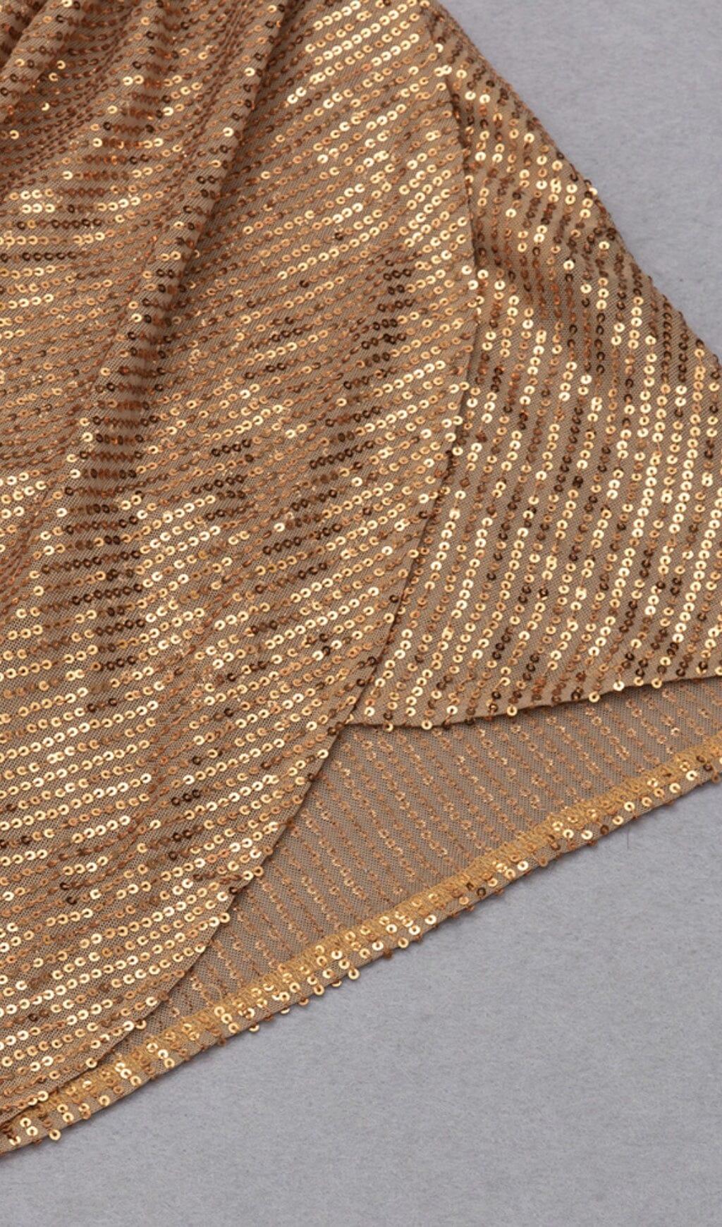 SEQUINED JERSEY WRAP-EFFECT MINI DRESS IN GOLD