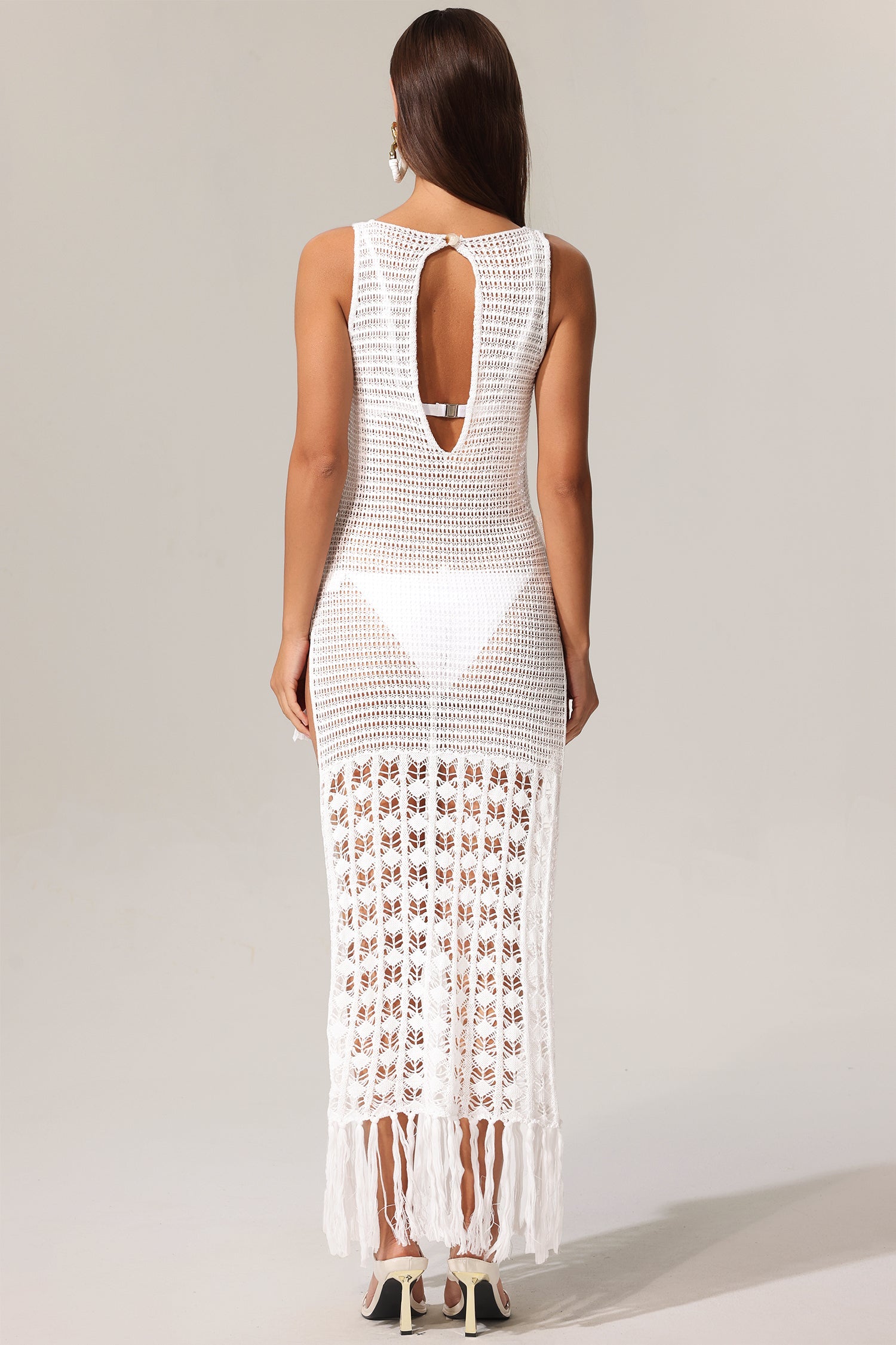 Serena Sleeveless Hollow Out High Slit Tassels Maxi Dress