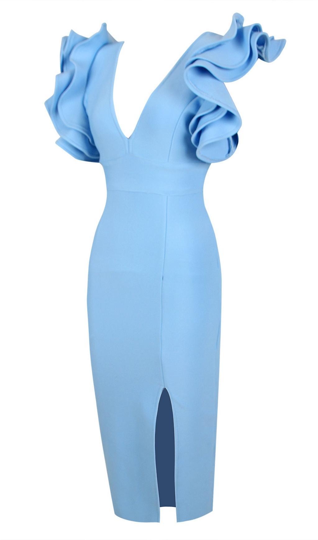 SPLIT MIDI DRESS IN BLUE