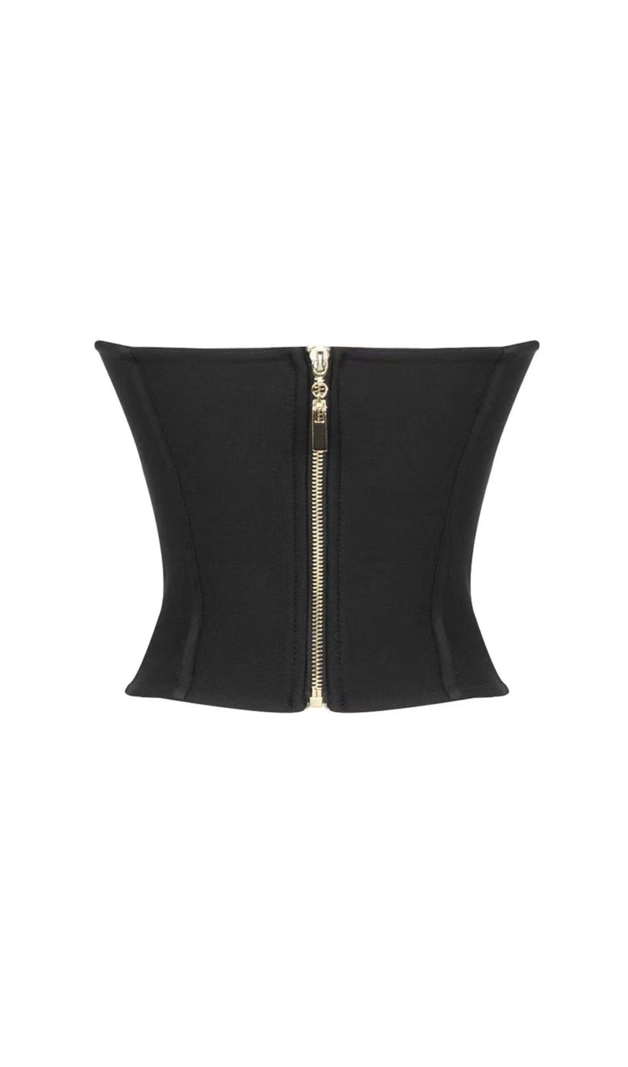 STRAPLESS CORSET CROPPED TOP IN BLACK