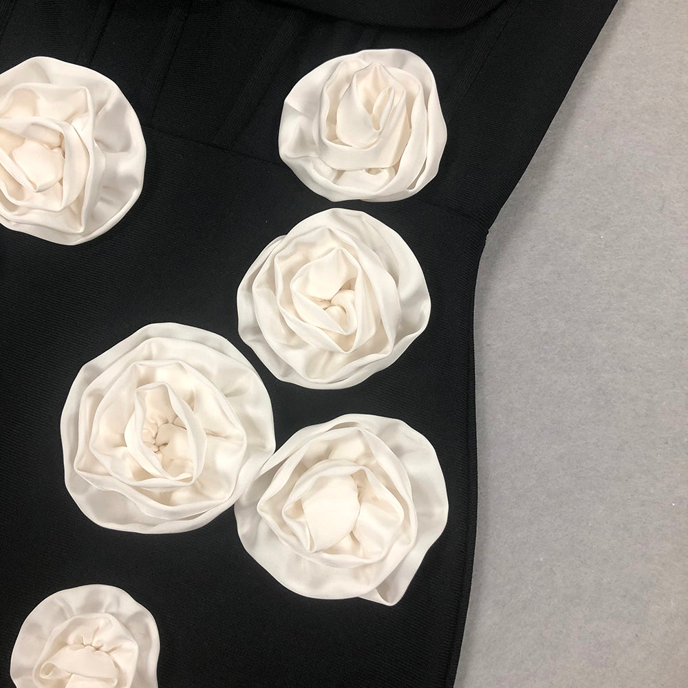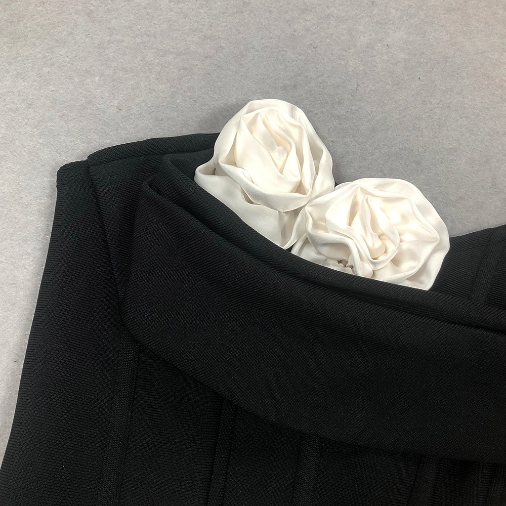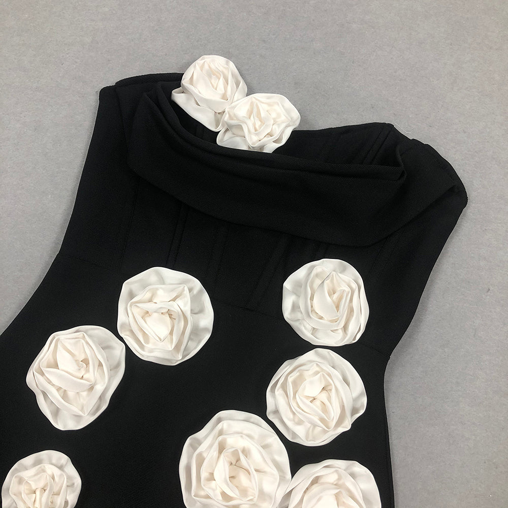 STRAPLESS FLORAL CORSET MAXI DRESS IN BLACK